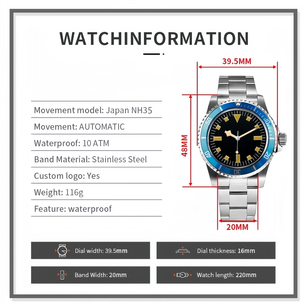 Customized LOGO Luxury Retro Super Luminous Japan Automatic Watches Snowflake Pointer High-quality Luxury Men's Mechanical Watch