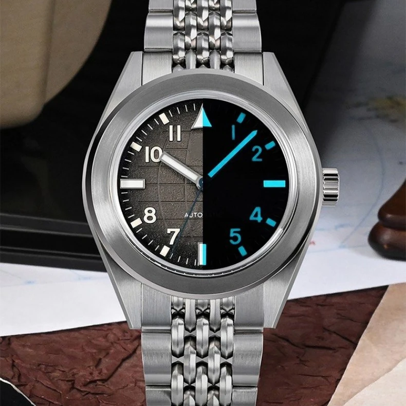 ODM Original Design Custom logo 39mm 316L Stainless Steel Men Automatic Mechanical Wristwatch for Sturdy Seven Bead Steel Strap
