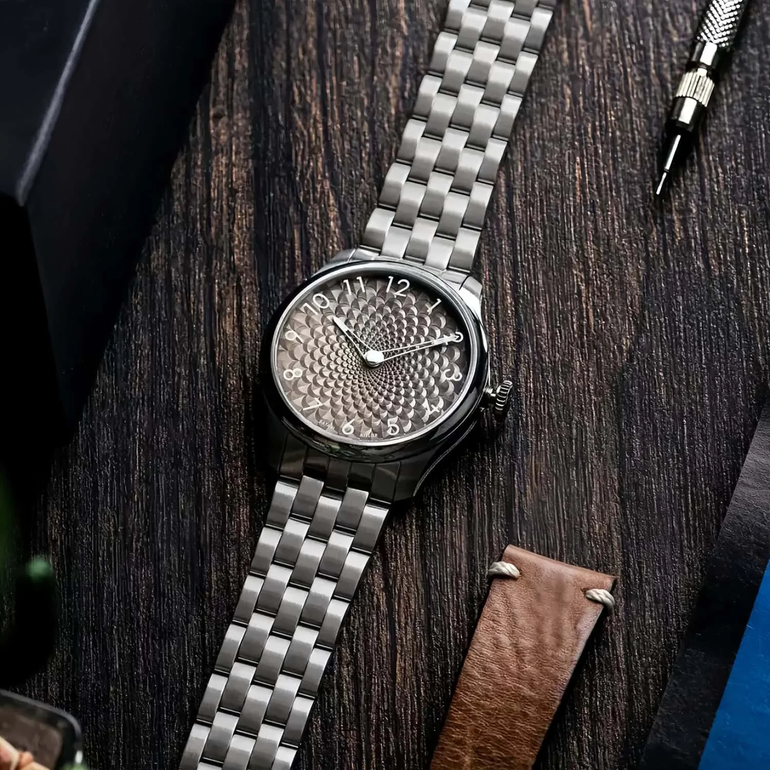Customized logo 3D Fish Scale Dial Luxury Luminous Stainless Steel Automatic Watch for Men with Arabic Studs