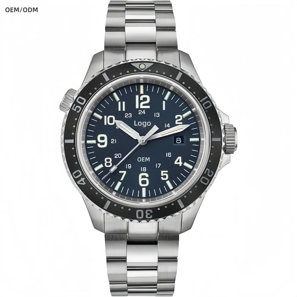 OEM Customized logo Luxury Pointer Luminous 46MM Men's Diving Watch Quartz Watch With Steel Band Quartz Watches for Ronda
