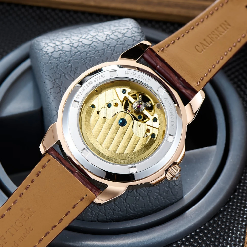 OEM Factory Customized Logo Men Luxury Diamond Bezel Automatic Watches Fashion Leather Strap Skeletonized Mechanical Watch