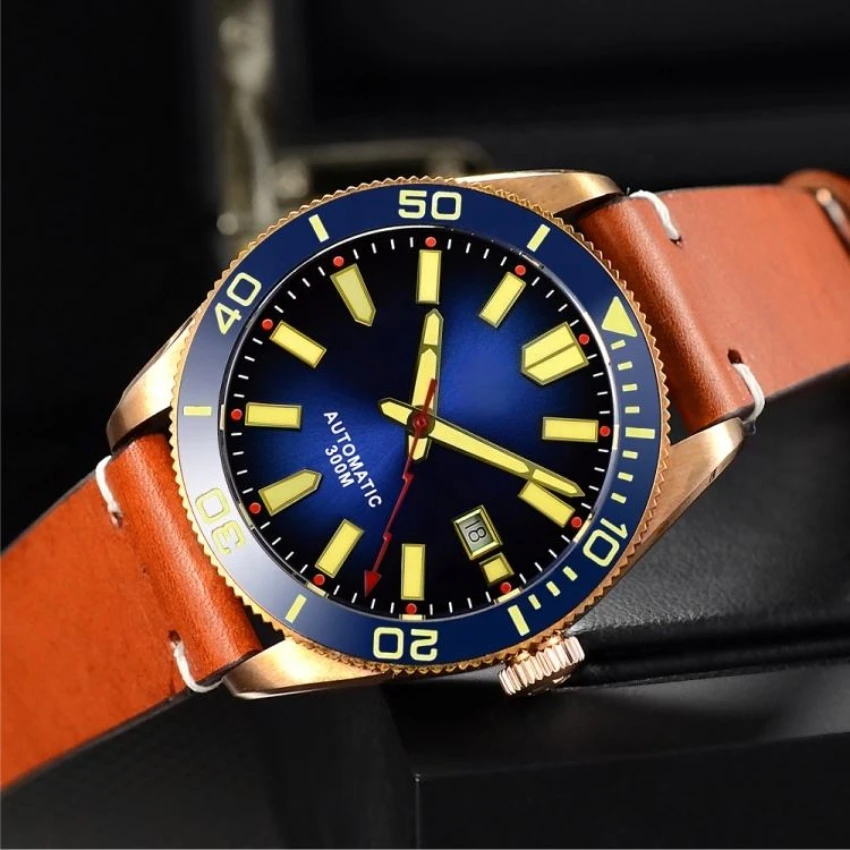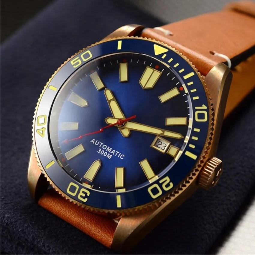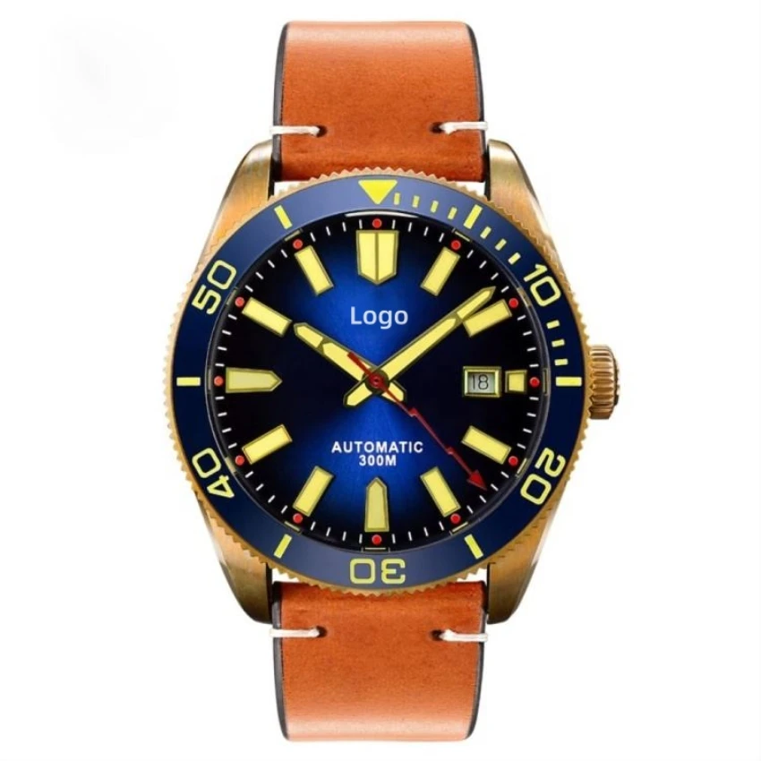Customizable Logos and Designs Men Automatic Vintage Bronze Diving Watches 300M Water Resistant Ceramic Bezel Retro Wristwatch