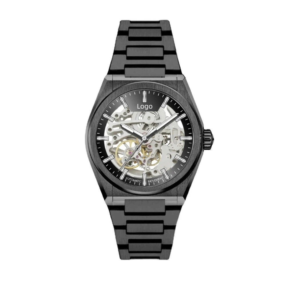 ODM Custom Logo Luxury Business Men Silver Mechanical Watches Skeleton Automatic Watch with Seiko NH70