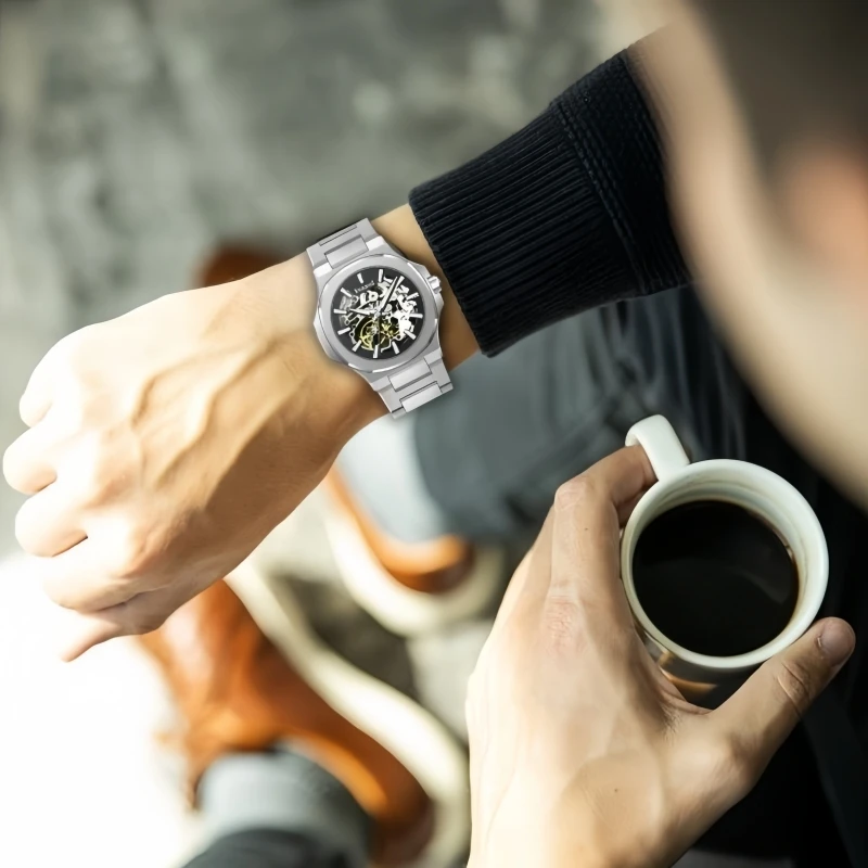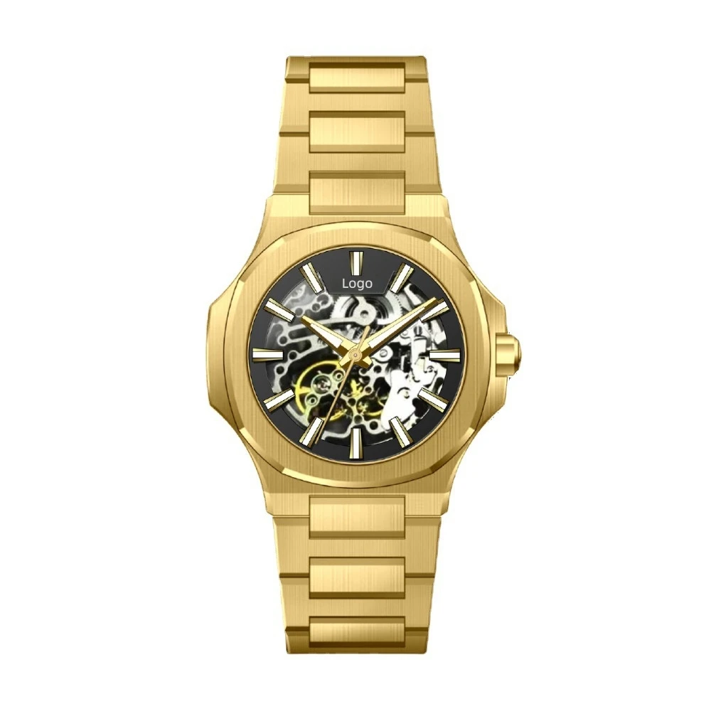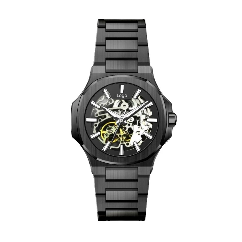 OEM Custom Logo Luxury Business Men Automatic Wristwatches Transparent Mechanical Watches Hollow Out Waterproof Watch Unisex