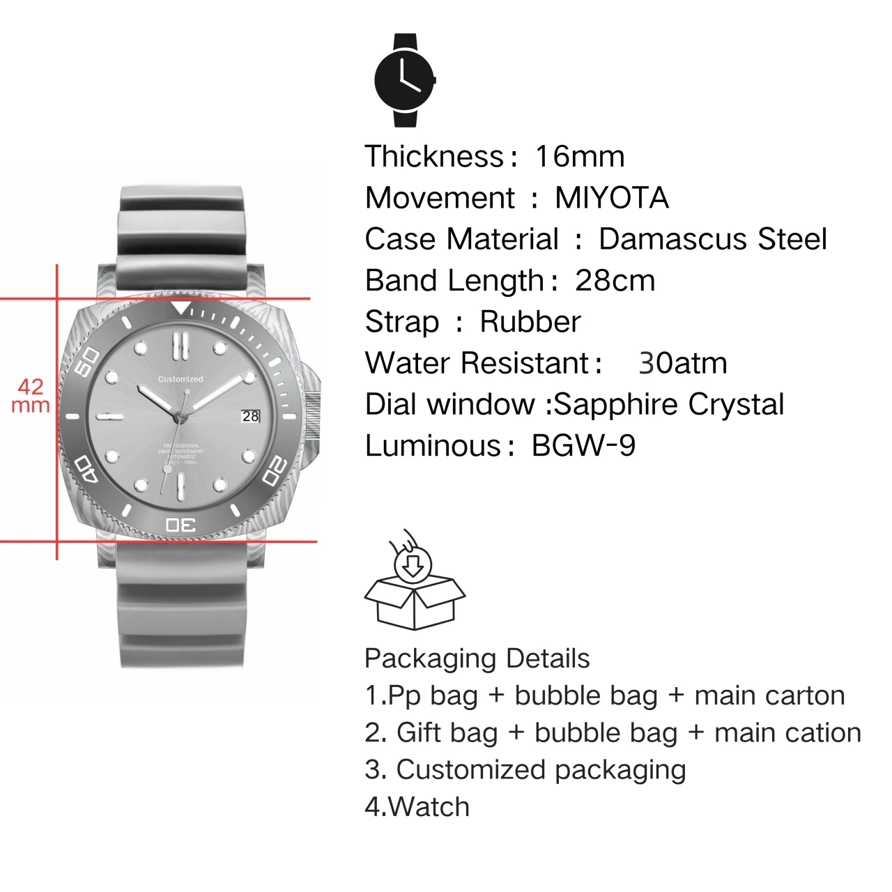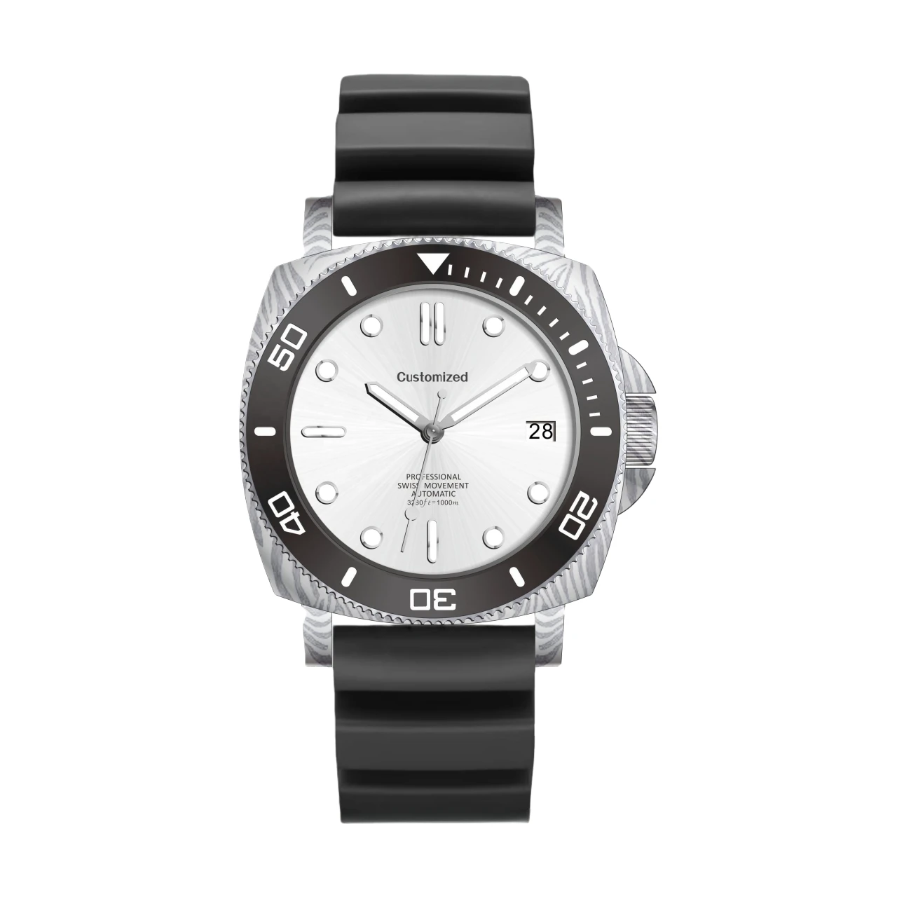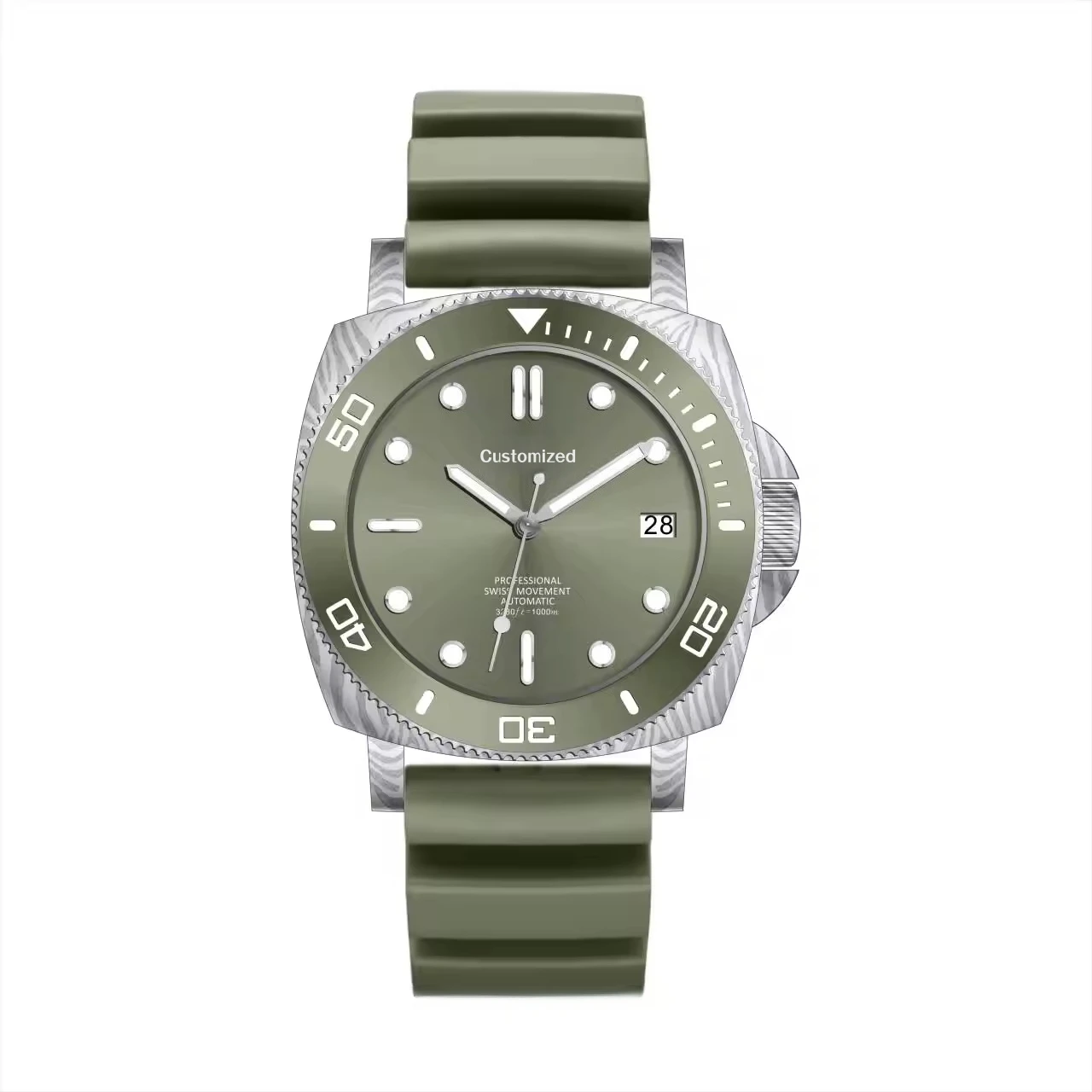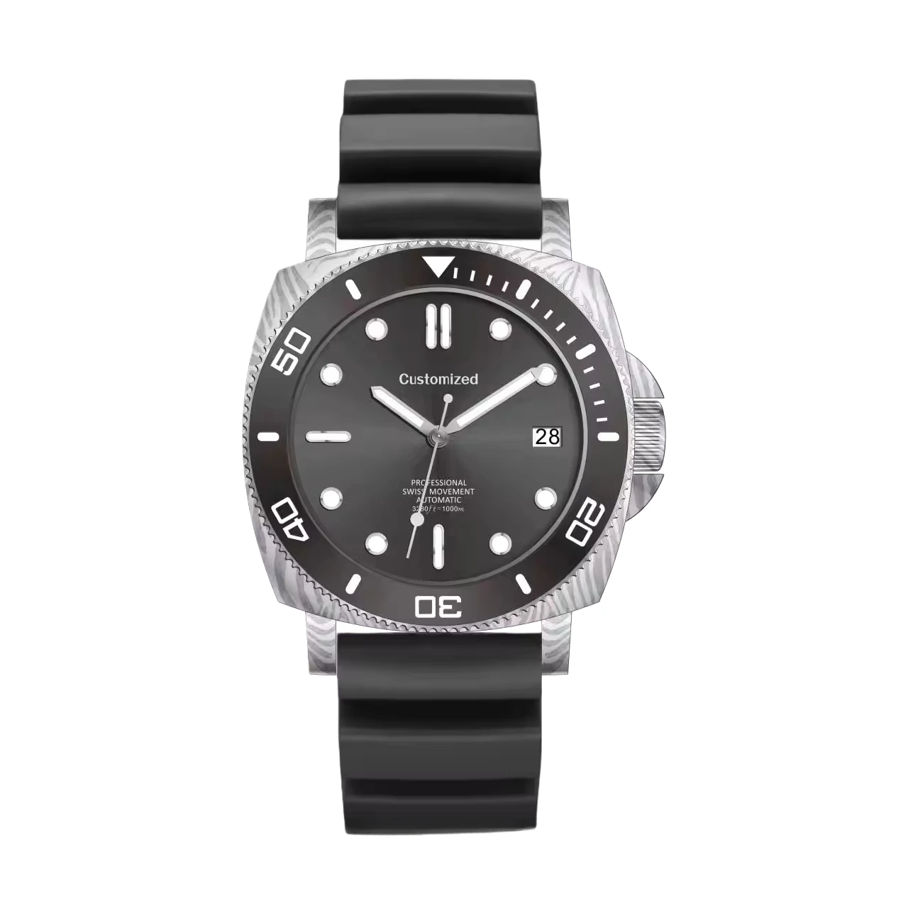 Factory OEM Custom Logo 300M Waterproof Diving Damascus Steel Mechanical Watches BGW9 Super Luminous Square Watch for Men