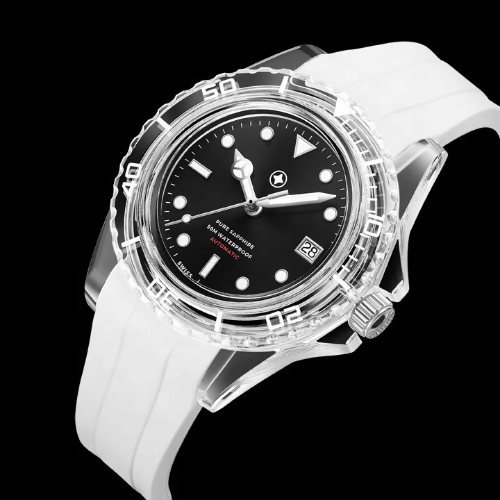 Free Shipping clear Sapphire Crystal Watch with Super BGW9 Luxury Automatic Wrist Watch SELLITA SW200-1 5ATM