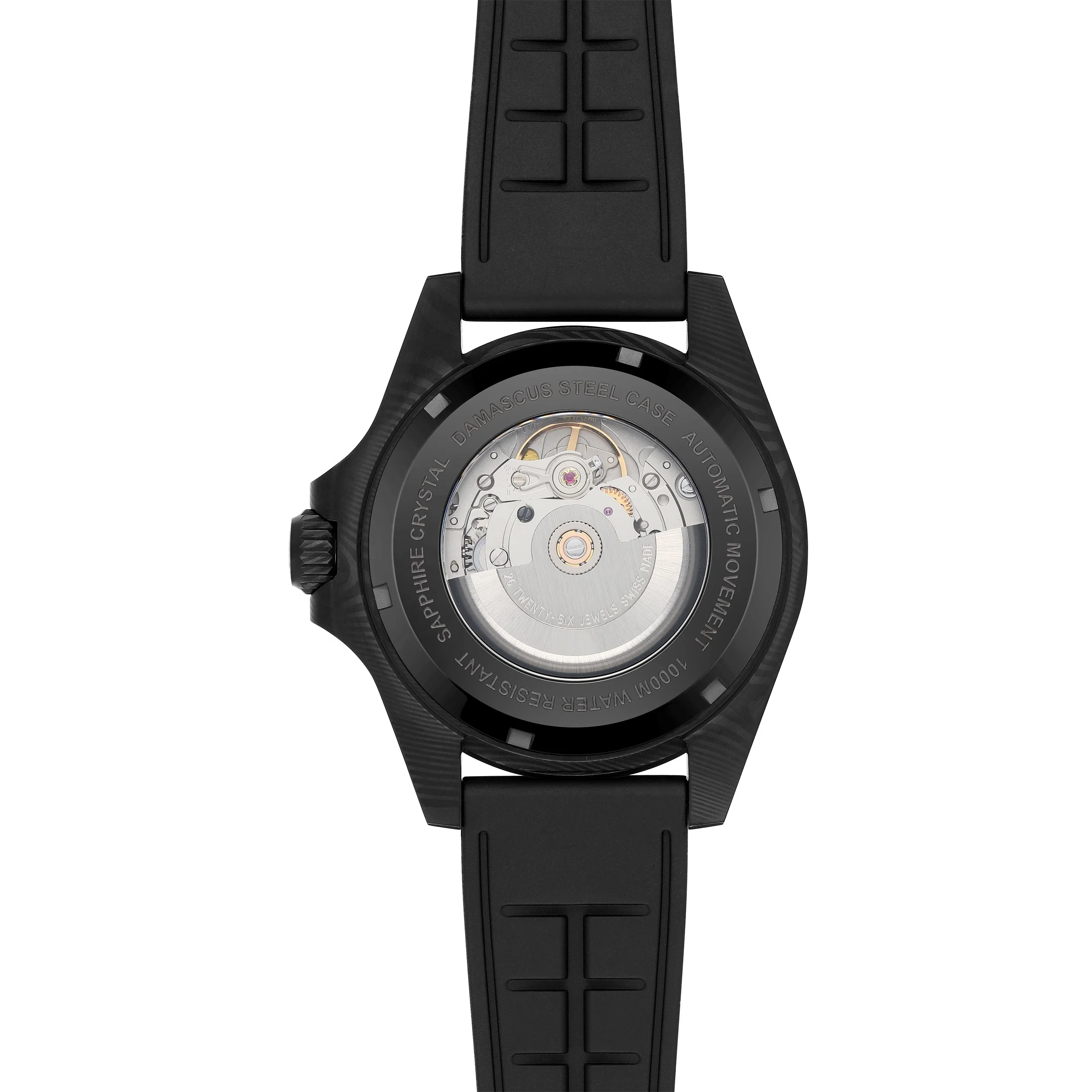 Custom Made Damascus Steel Watch Diving Watch Automatic Wrist Watch With Damascus Insert Helium Escape