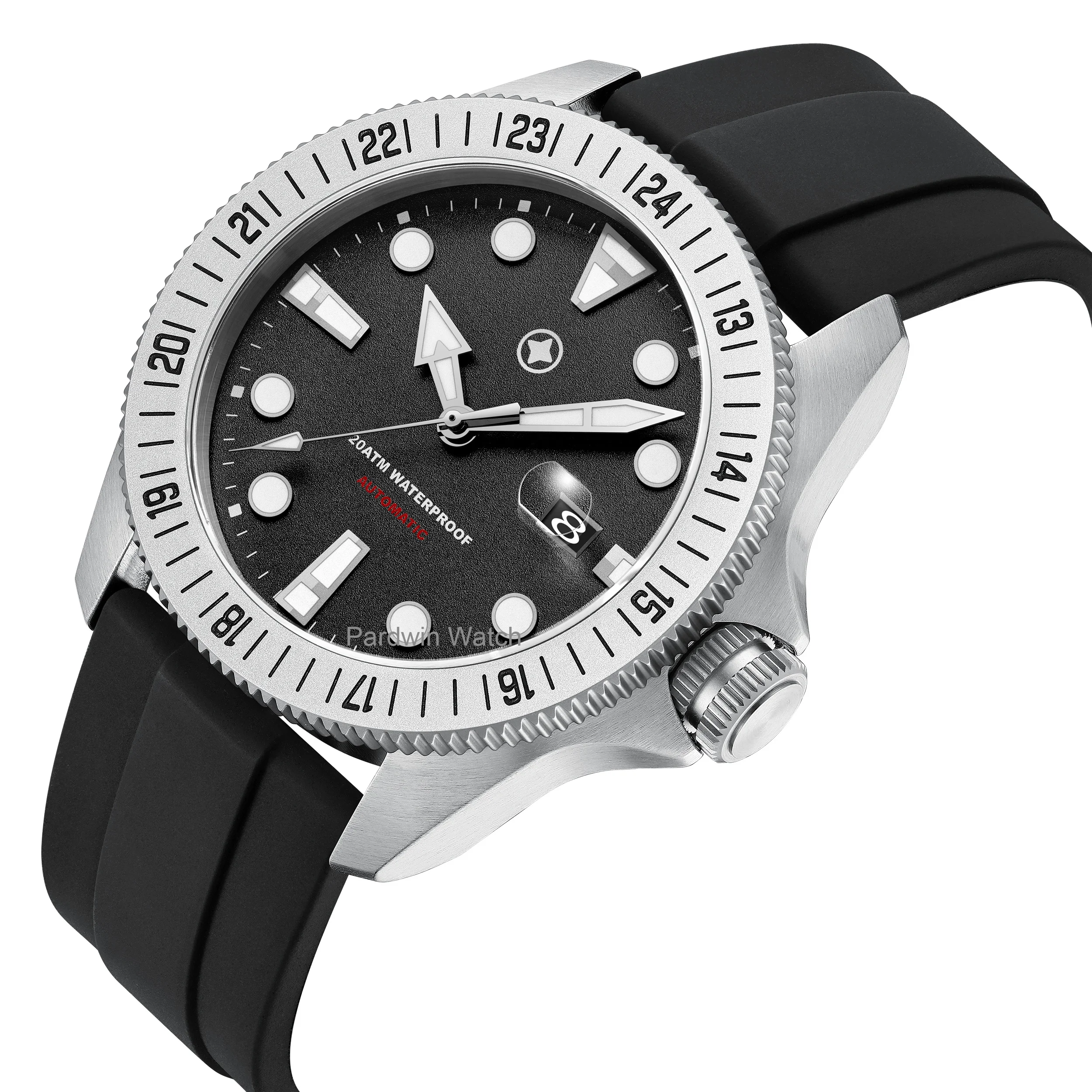 Customized Automatic Movement 316L Stainless Steel Watch Date Display With Sapphire Glass Bubble Magnifier Waterproof Logo Watch