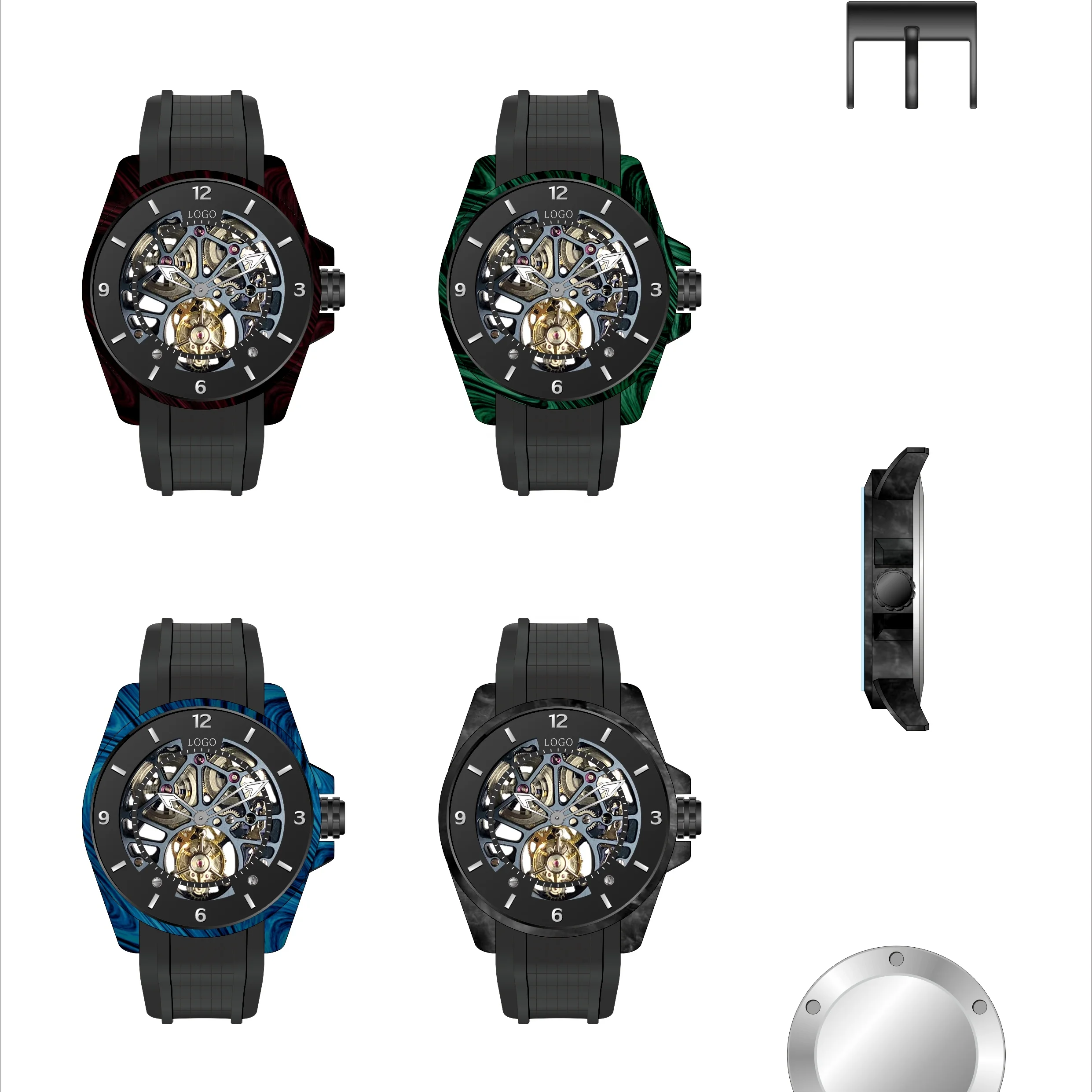 Customizable Luxury Men's Carbon Fiber Watch Leather Strap Analog Dial Sapphire Crystal 10 Bar Water Resistance Limited Edition