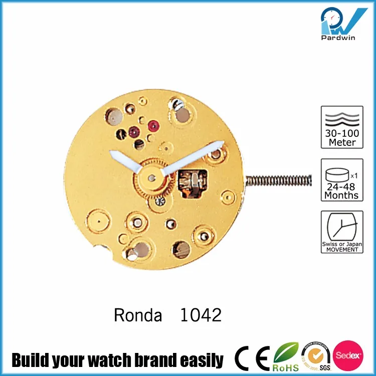 Super Slim Alloy Watch Movement Ronda Quartz Caliber 1042 Battery Life 36 Months 5 Jewels 2 Hands