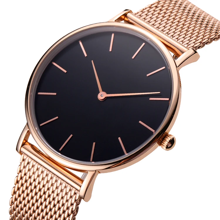Unisex Gender Watch Men Women Rose Gold 40mm Stainless Steel Case Leather Band Fashion Sport Watch with Japanese Movement