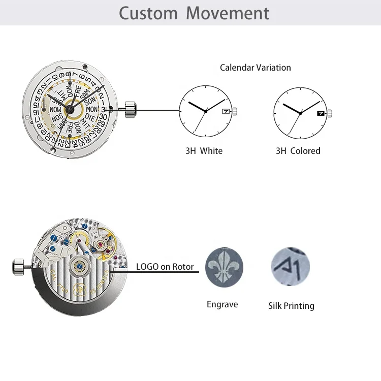Luxury for Alloy Mechanical Watch ETA 7750 Automatic Movement with Date and Day 2 Hands 54 Hours