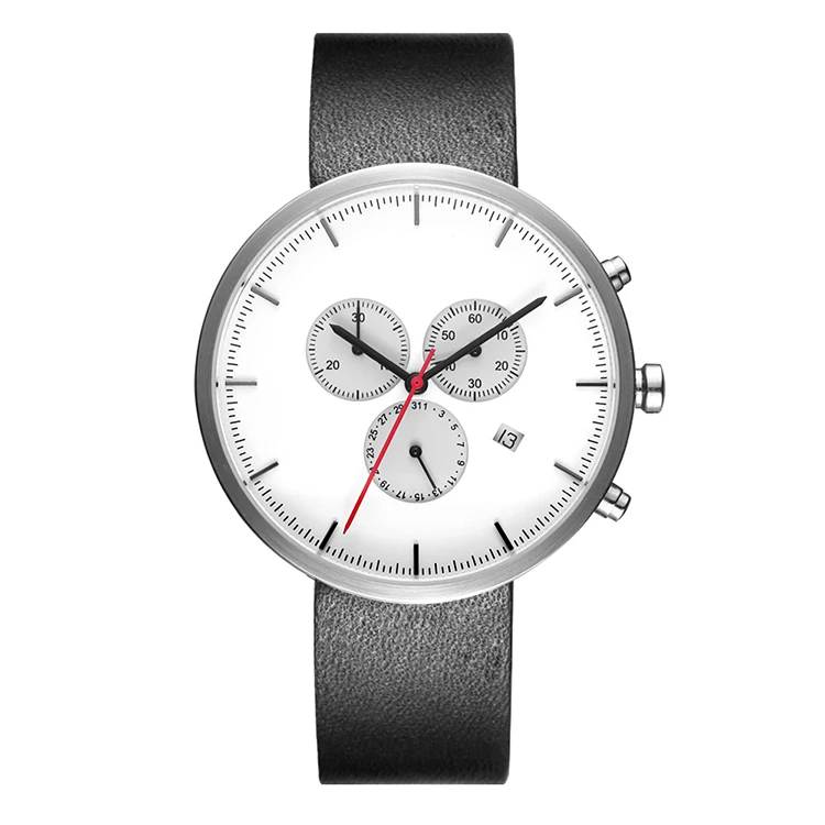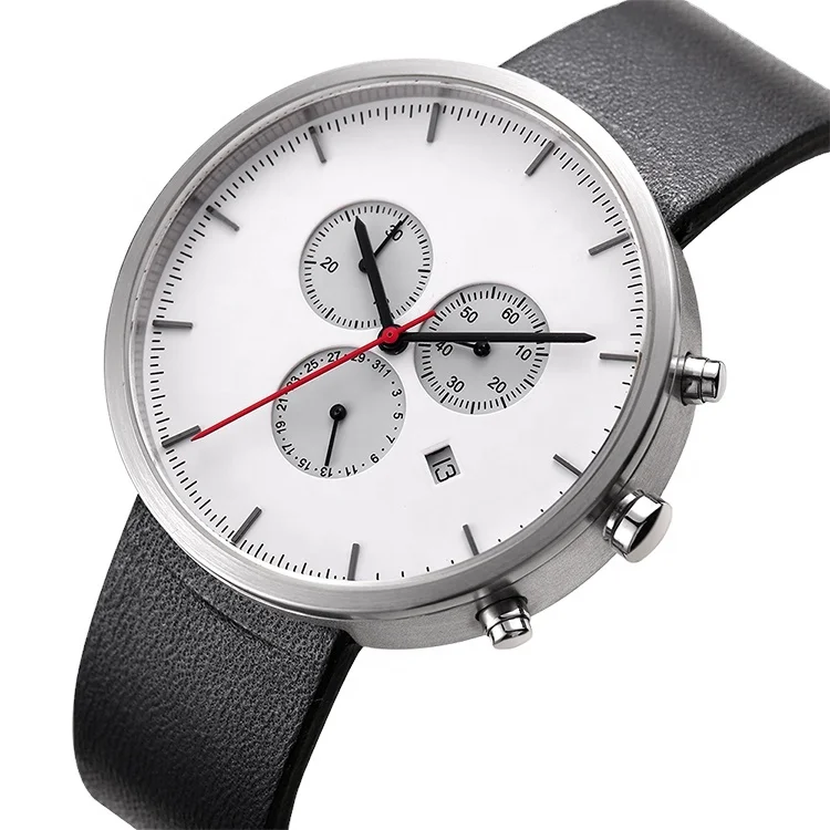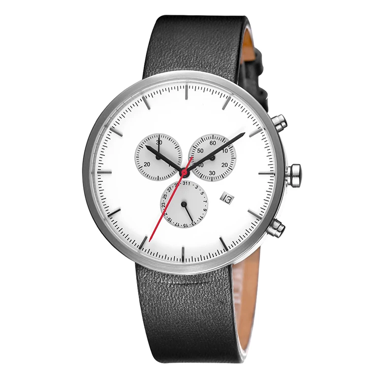 Custom Logo Luxury Men's Triple Sub Dial Pointer Chronograph Lug-less Stainless Steel
