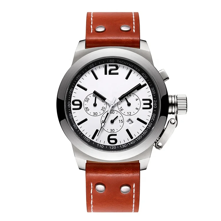 Luxury Sport Fashion Stainless Steel Carbon Fiber Dial Watch with Sapphire Crystal Glass Leather Strap Custom Brand
