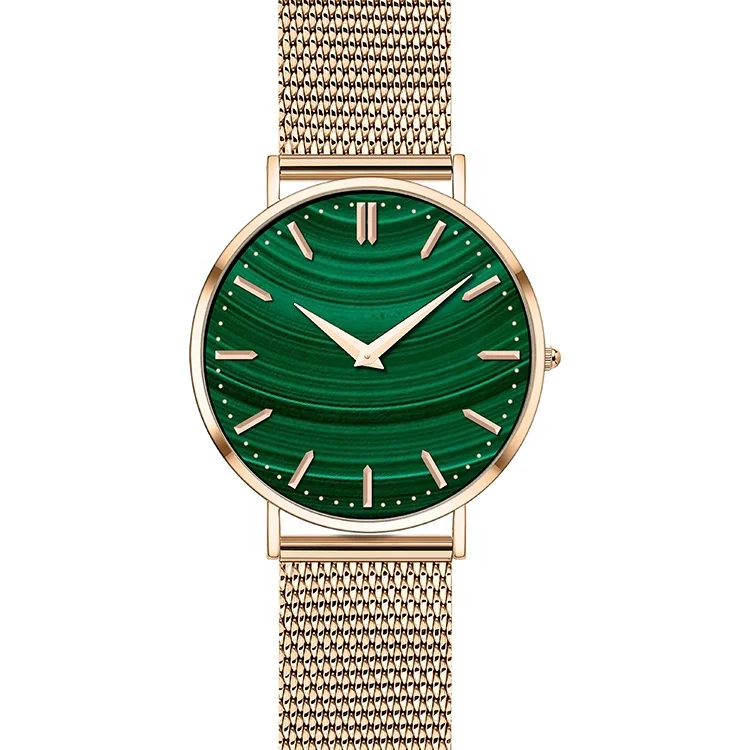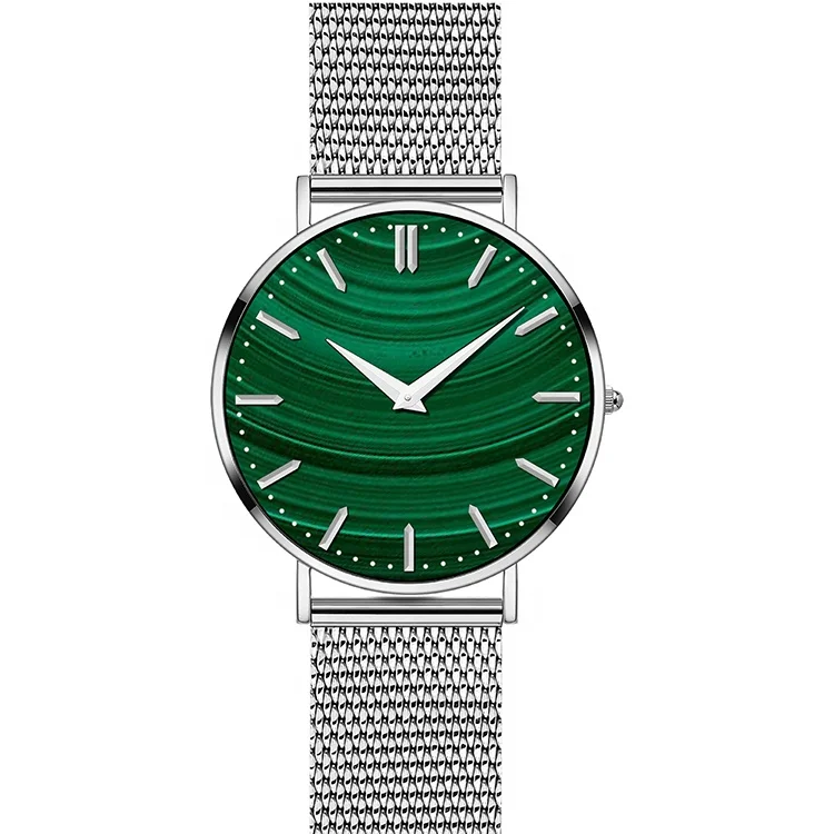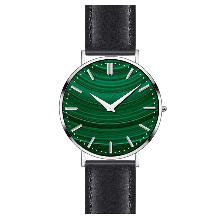 316L Stainless Steel Case Ronda Movement Quartz Watch for Men with Leather Strap and Malachite Dial-OEM Brand