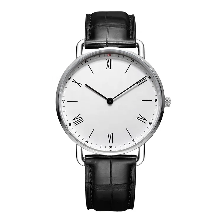 Mens Fashion Stainless Steel Leather Quartz Watch with Sapphire Crystal Dial Water Resistant
