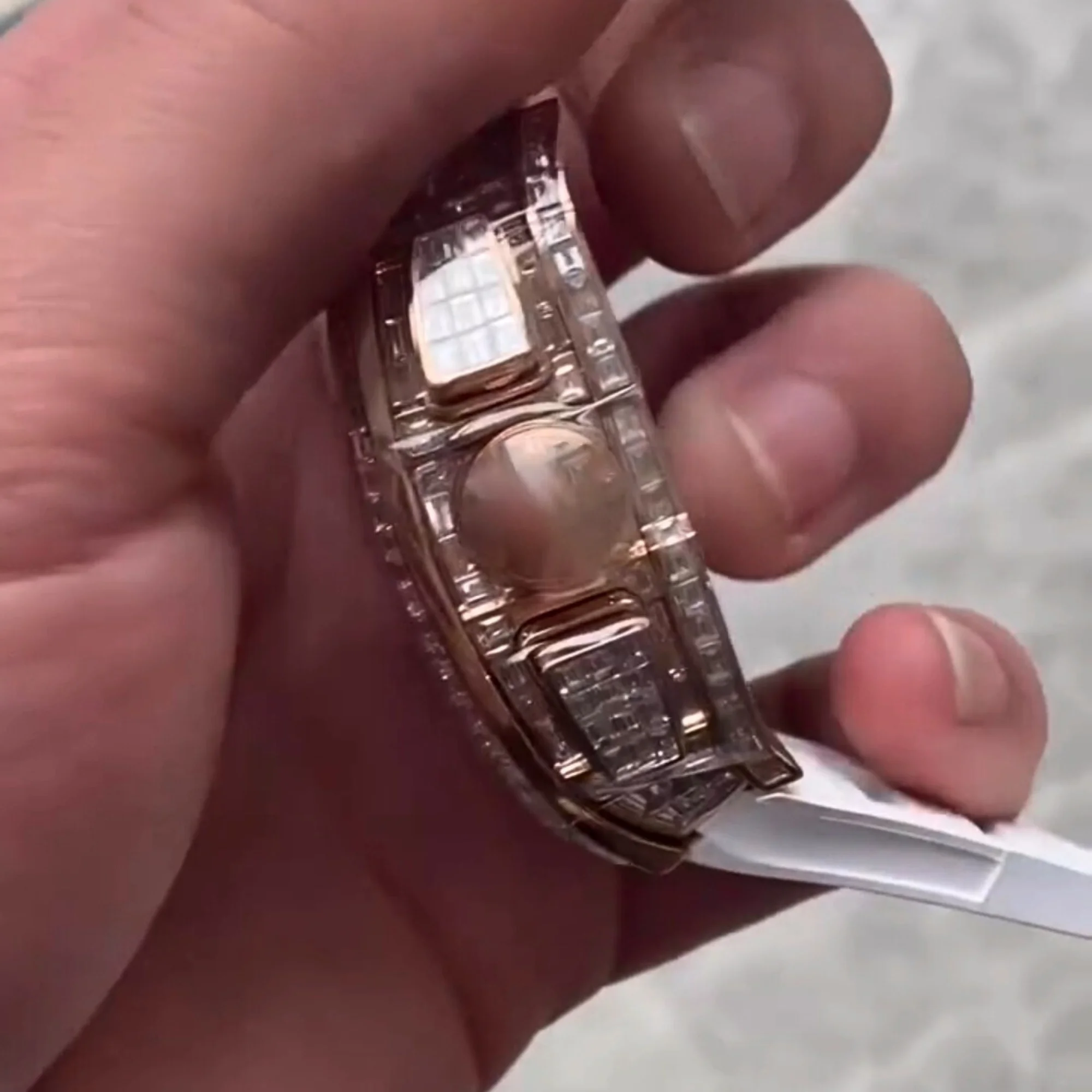 Top Selling Custom Design Round Dial Dual Tone Hip Hop Bust Down Luxury Rubber Strap VVS Lab Grown Outdoor Sports Watch for Men