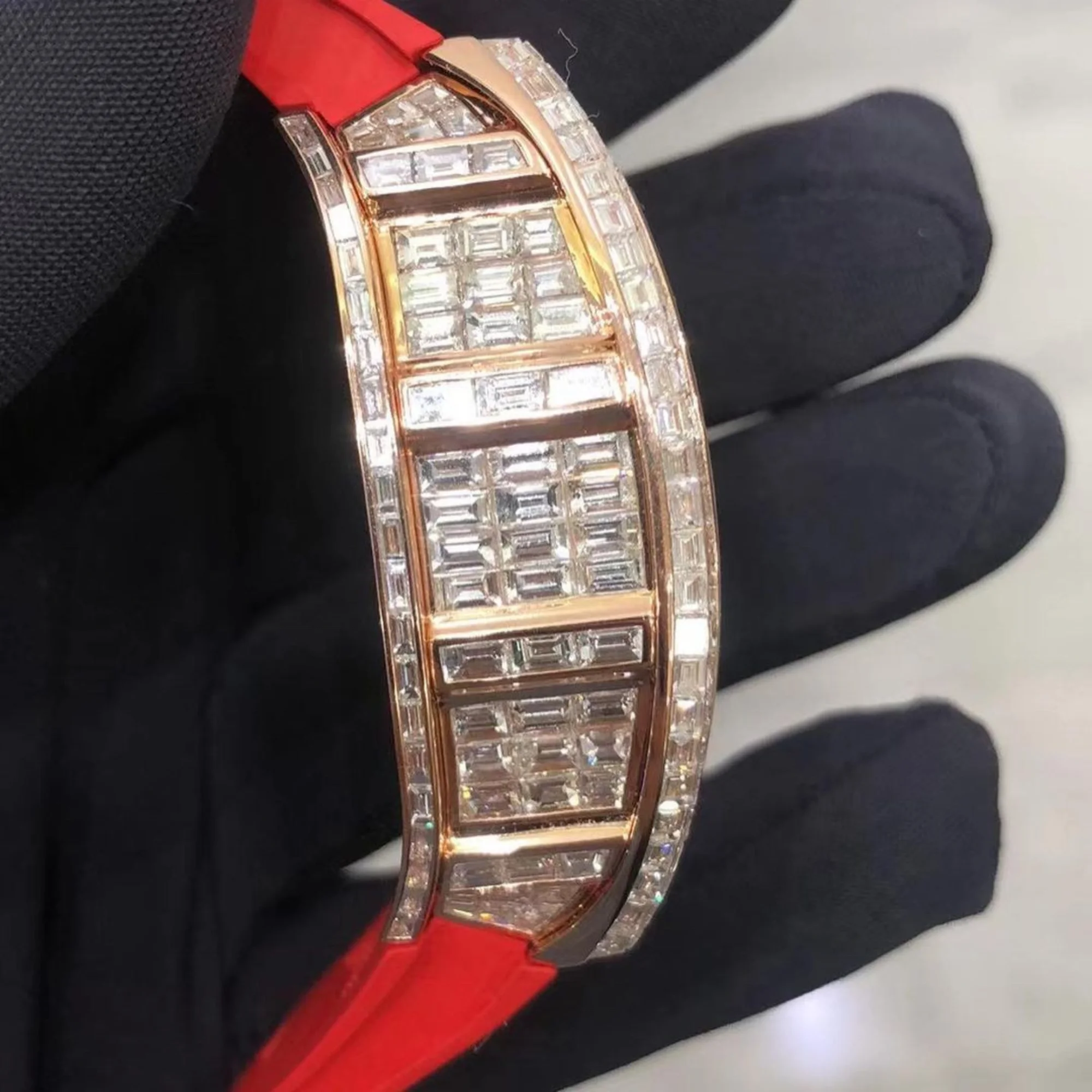 Wholesale Square Yellow Gold Iced Out Moissanite Watch | VVS Skeleton Luxury Antique Business Presidential Design