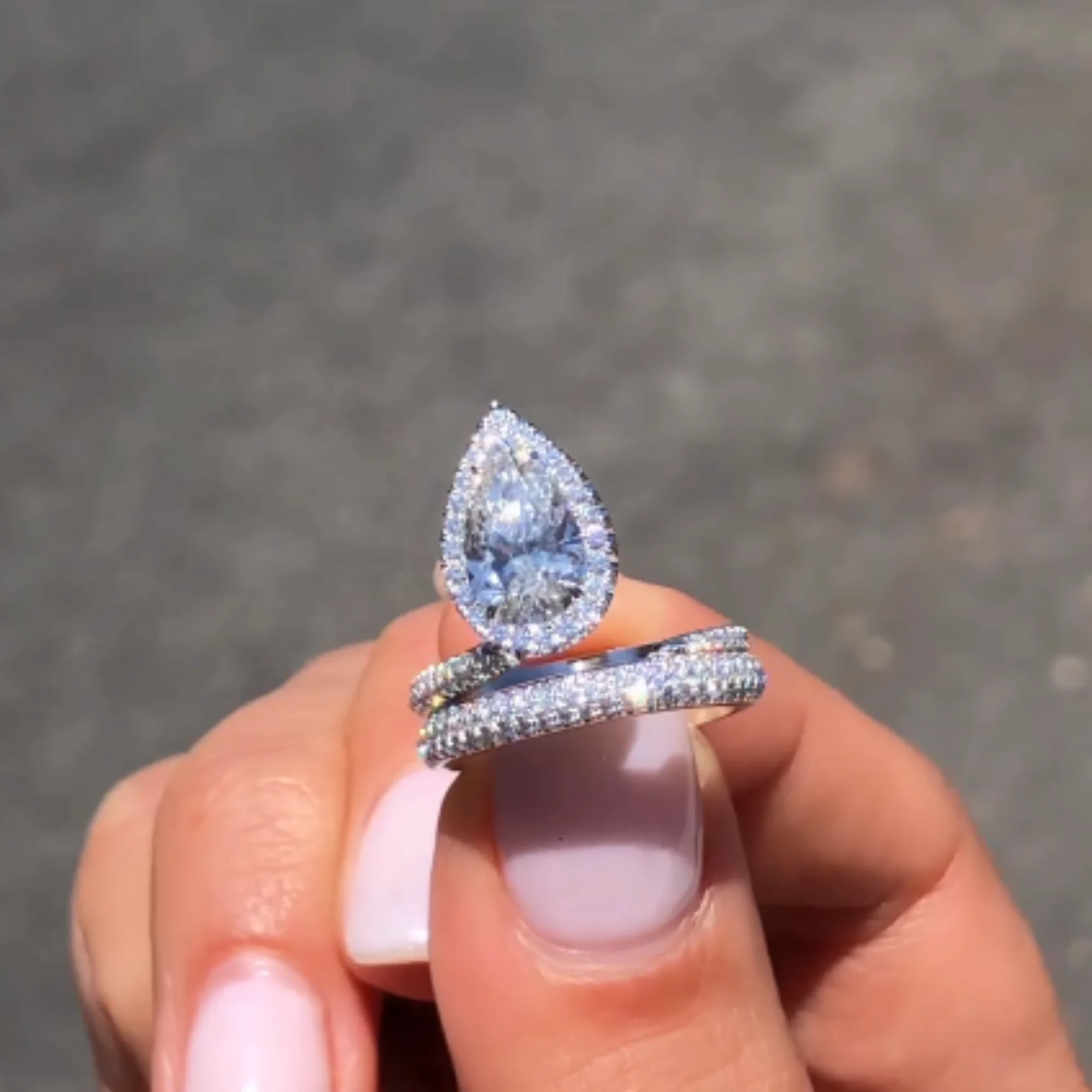 1.50 Carat Lab-Grown Pear Cut Diamond Ring 14k White Gold with Rhodium Plating Engagement Wedding Jewelry eternity vermeil
