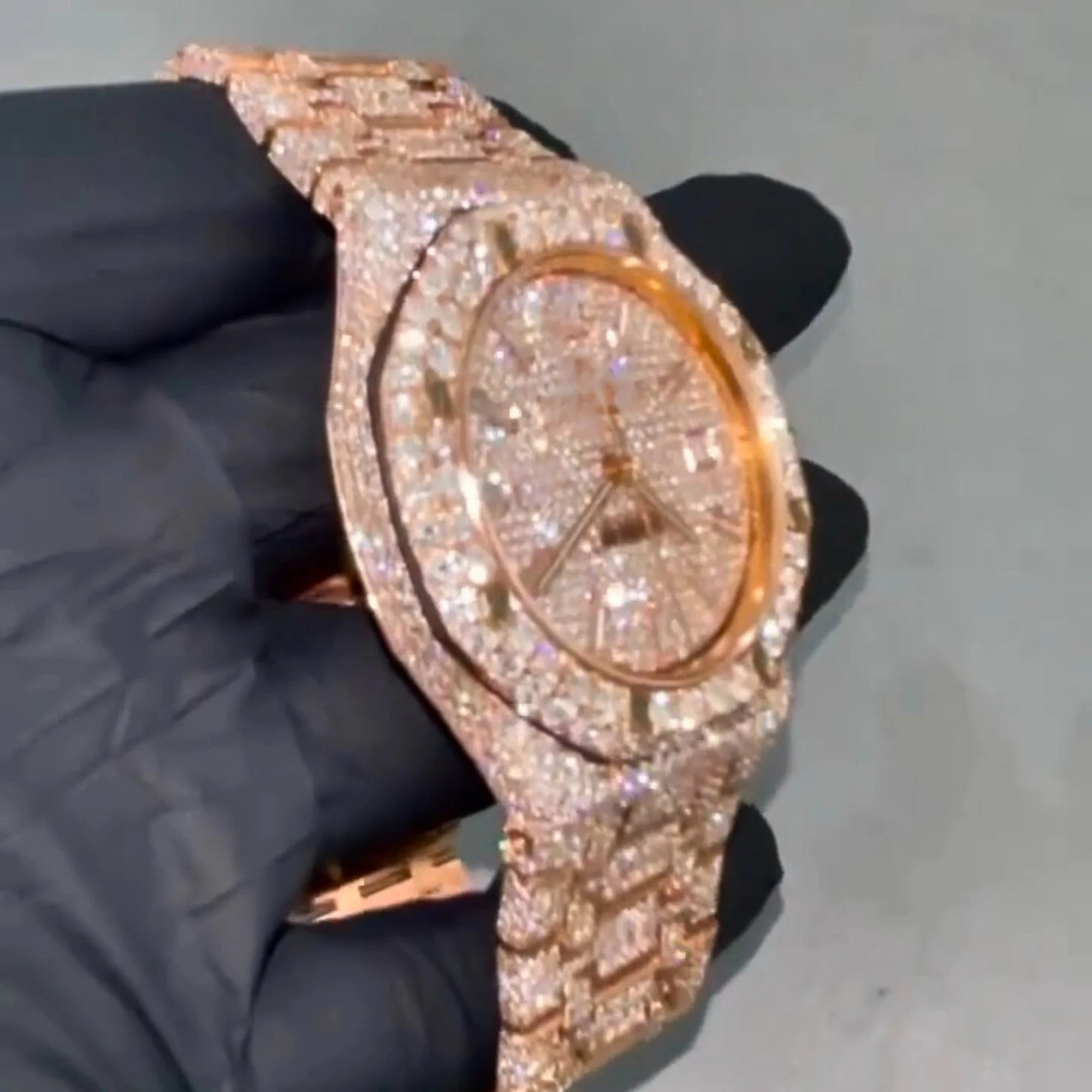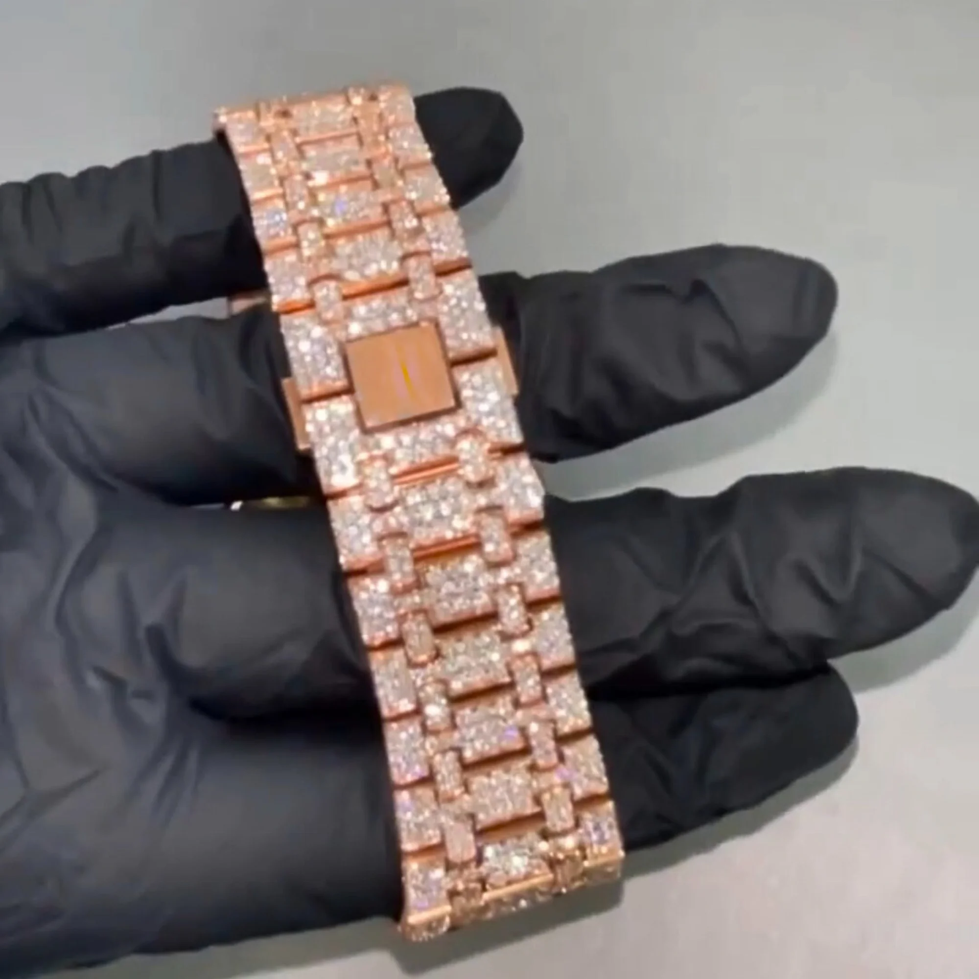Skeleton Square Moissanite Watches | Glass Pointer Hands | Yellow Gold | VVS Luxury Presidential Style | Iced Wholesale Supply