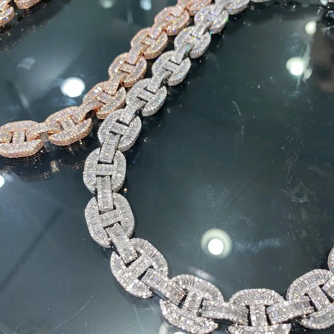 Factory Direct High Quality 18mm Iced Hip Hop Cuban Chain Gold Plated 925 Sterling Silver Cut Moissanite Elegant Design