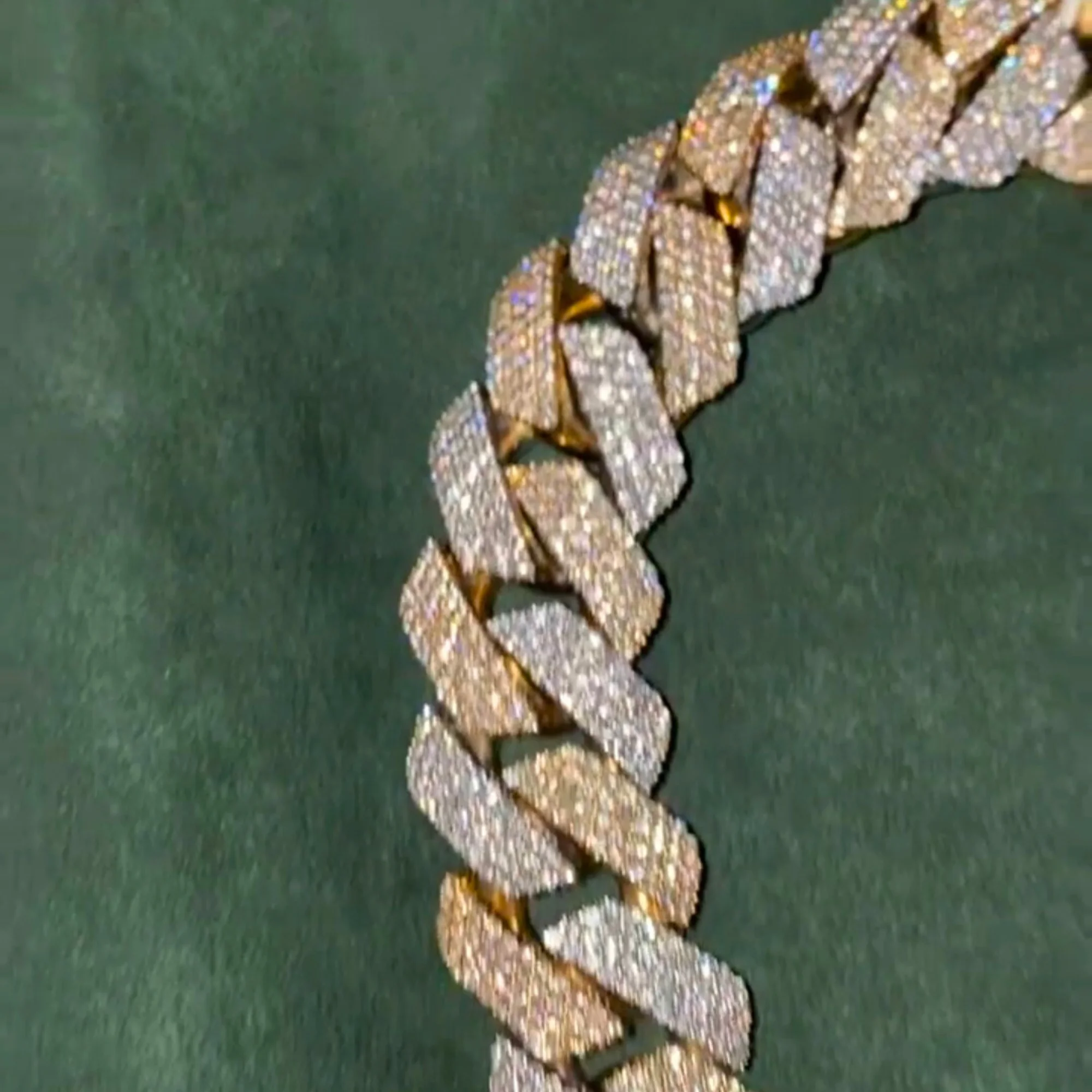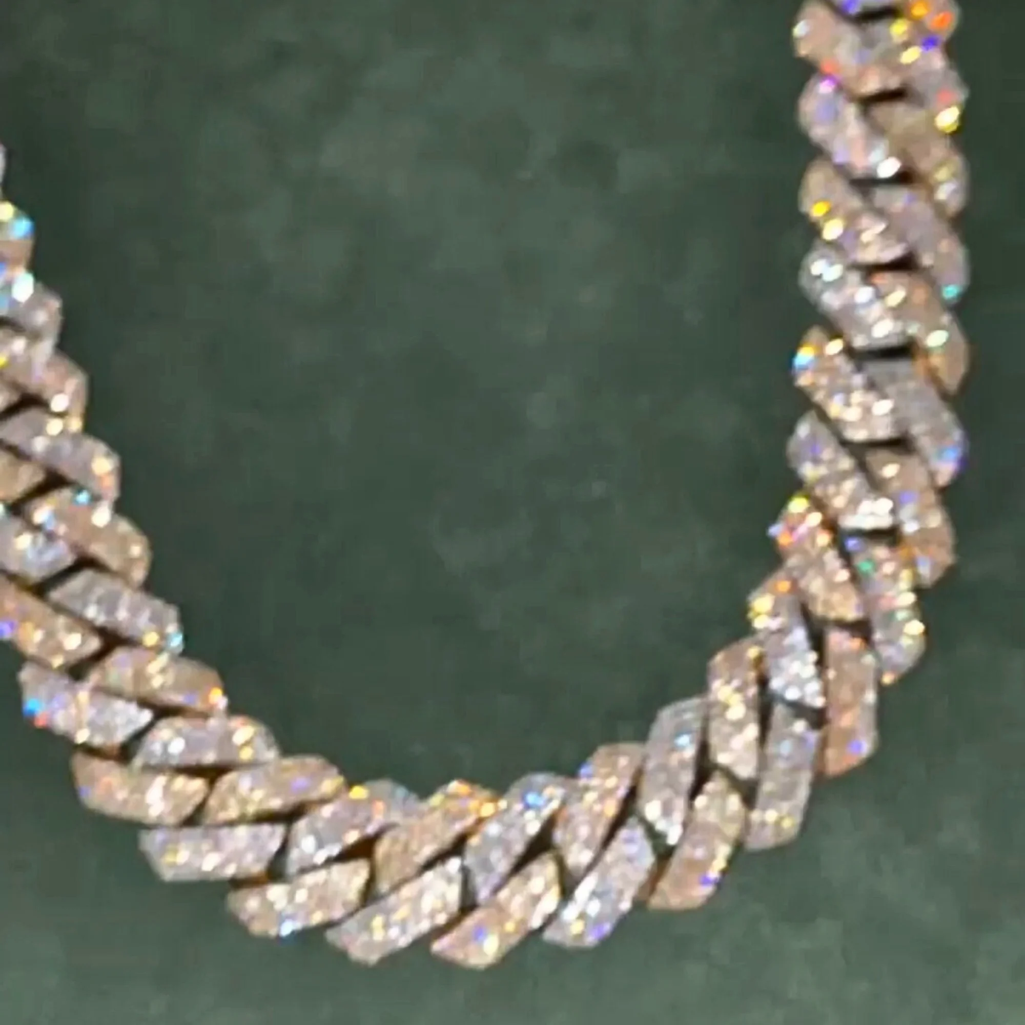 Best High Quality Customized Iced Jewelz Iced Hip Hop Unisex 20mm Cuban Link Moissanite Chain 925 Sterling Silver White/Yellow