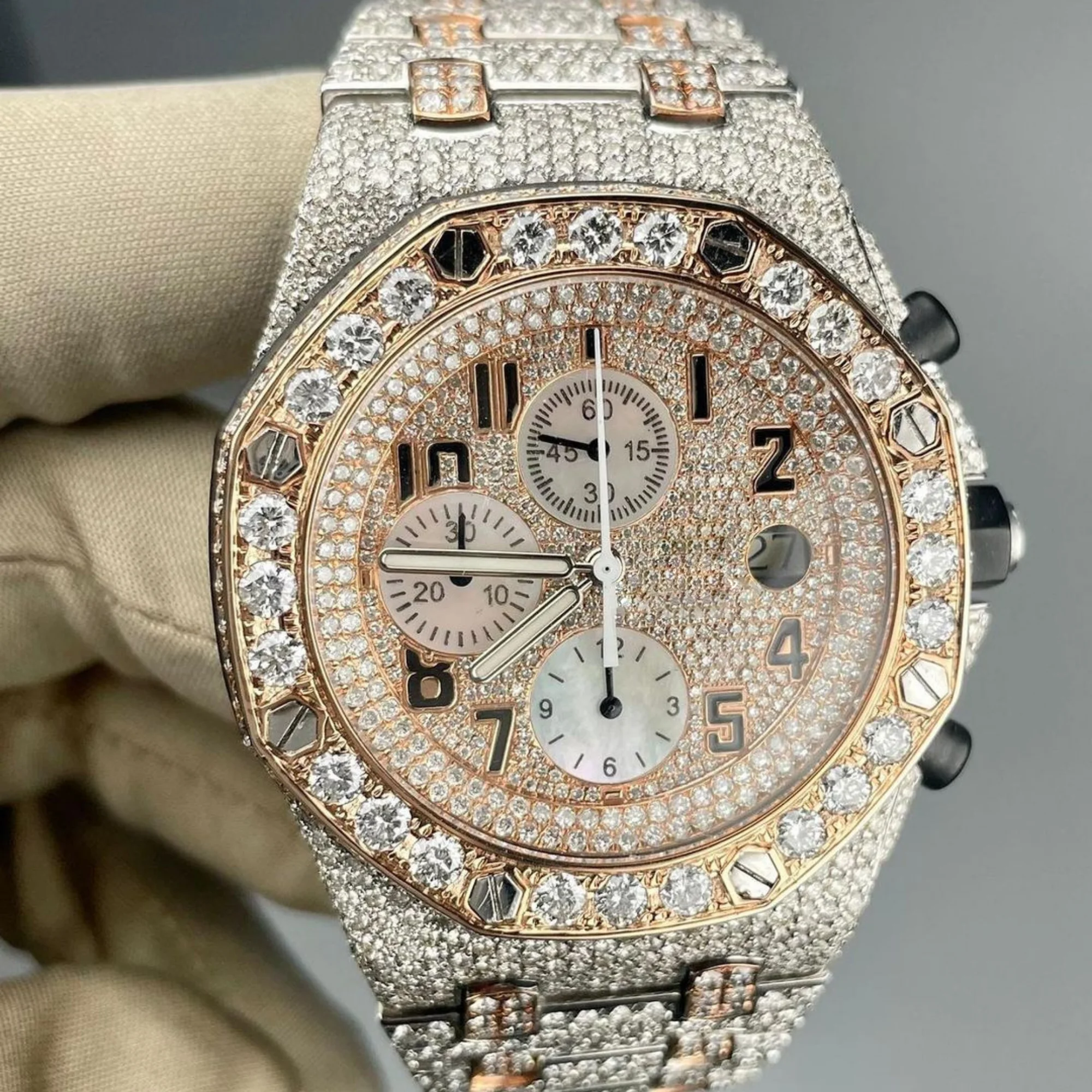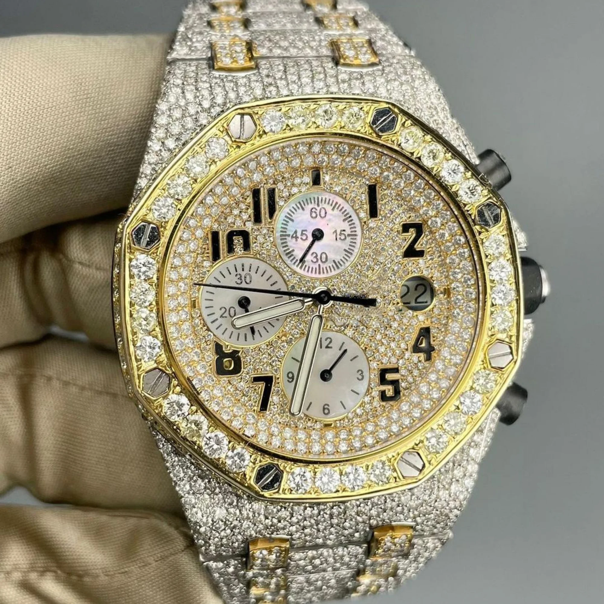Best Quality Fully Customized Stainless Steel Water Resistant Iced Out Diamond Moissanite Watch for Men Hip Hop Jewelry Gift