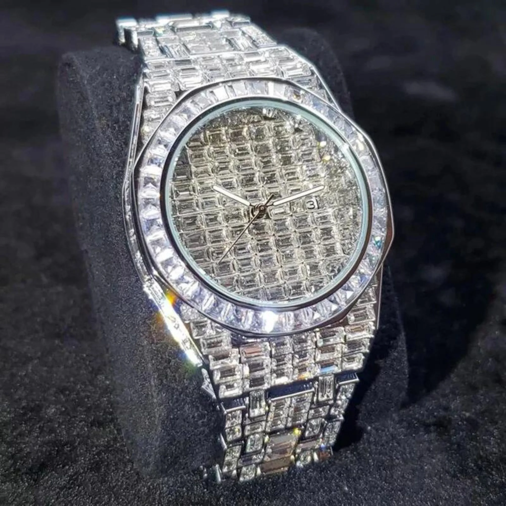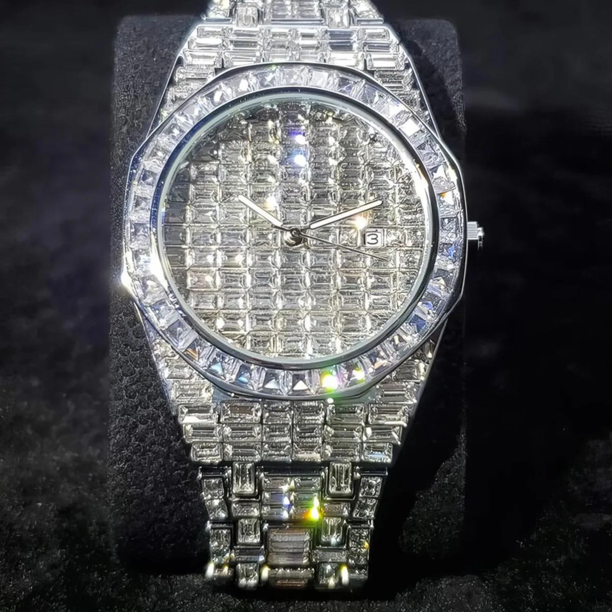 High Quality Diamond Moissanite Stainless Steel White Gold/Yellow Gold Business Iced Glass Dial Luxury Automatic Mechanical