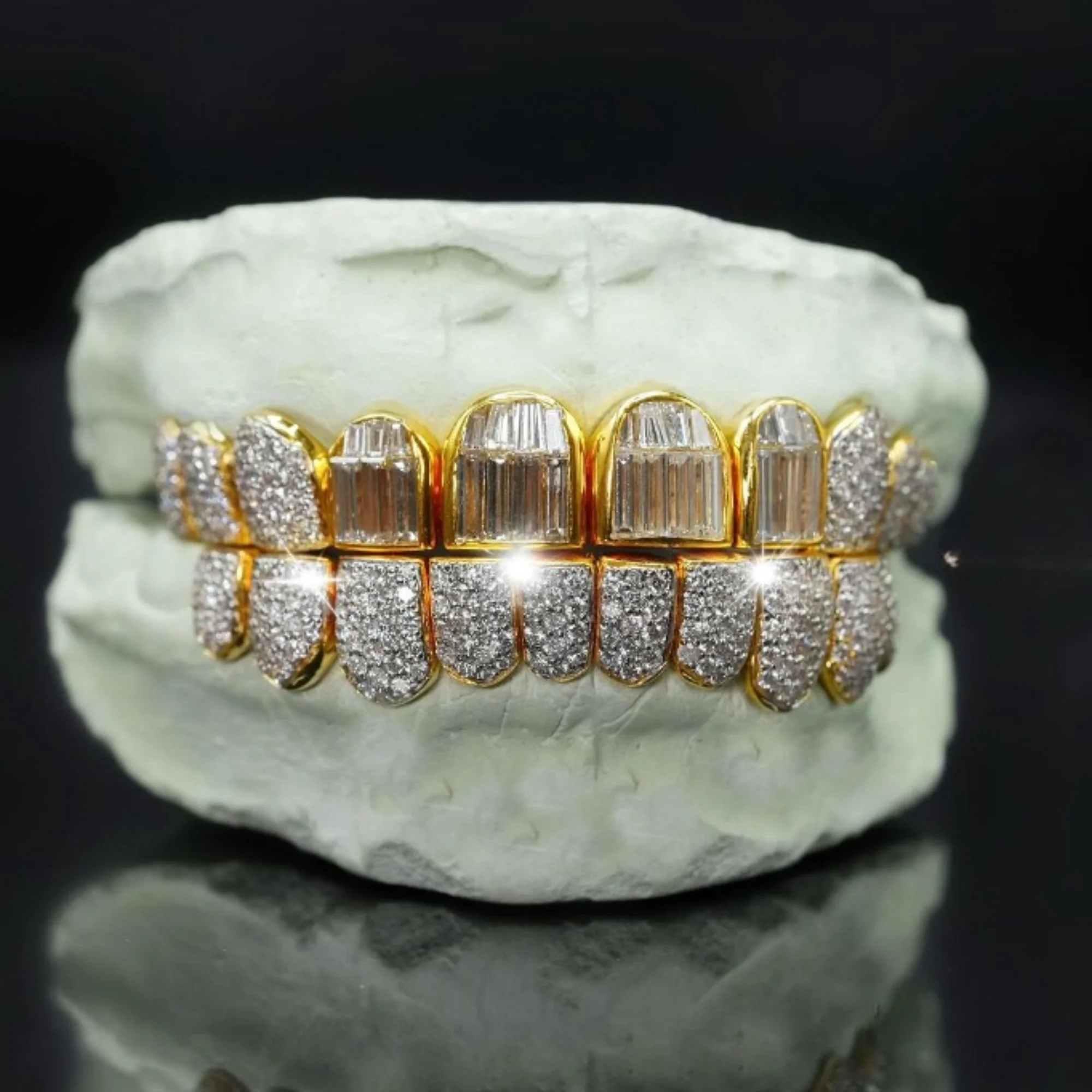 Men's Hip Hop Custom 925 Silver Rhodium Plated Luxury Iced Princess Cut Channel Set Moissanite Teeth Grillz White Gold Jewelry