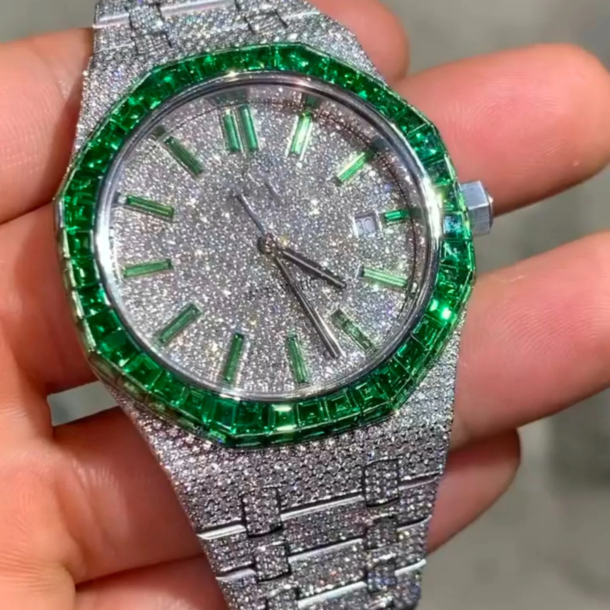 Elegant Luxurious Business Hip Hop Square Wristwatch Hand Studded with Vvs Clarity Lab Grown Diamonds Stainless Steel Dial
