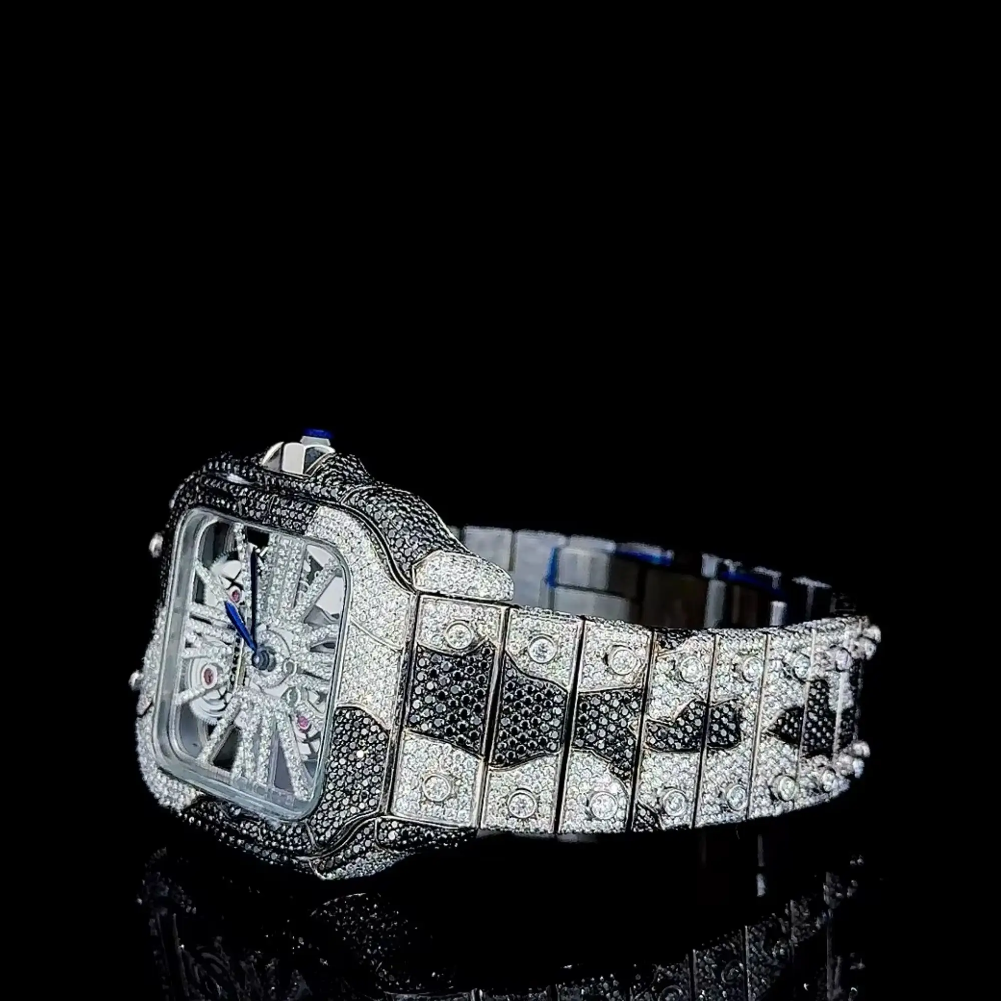Iced VVS Moissanite 40mm Alloy Antique Watches | Luxury Skeleton Design | Business Style Yellow Gold Band | Diamond Tester