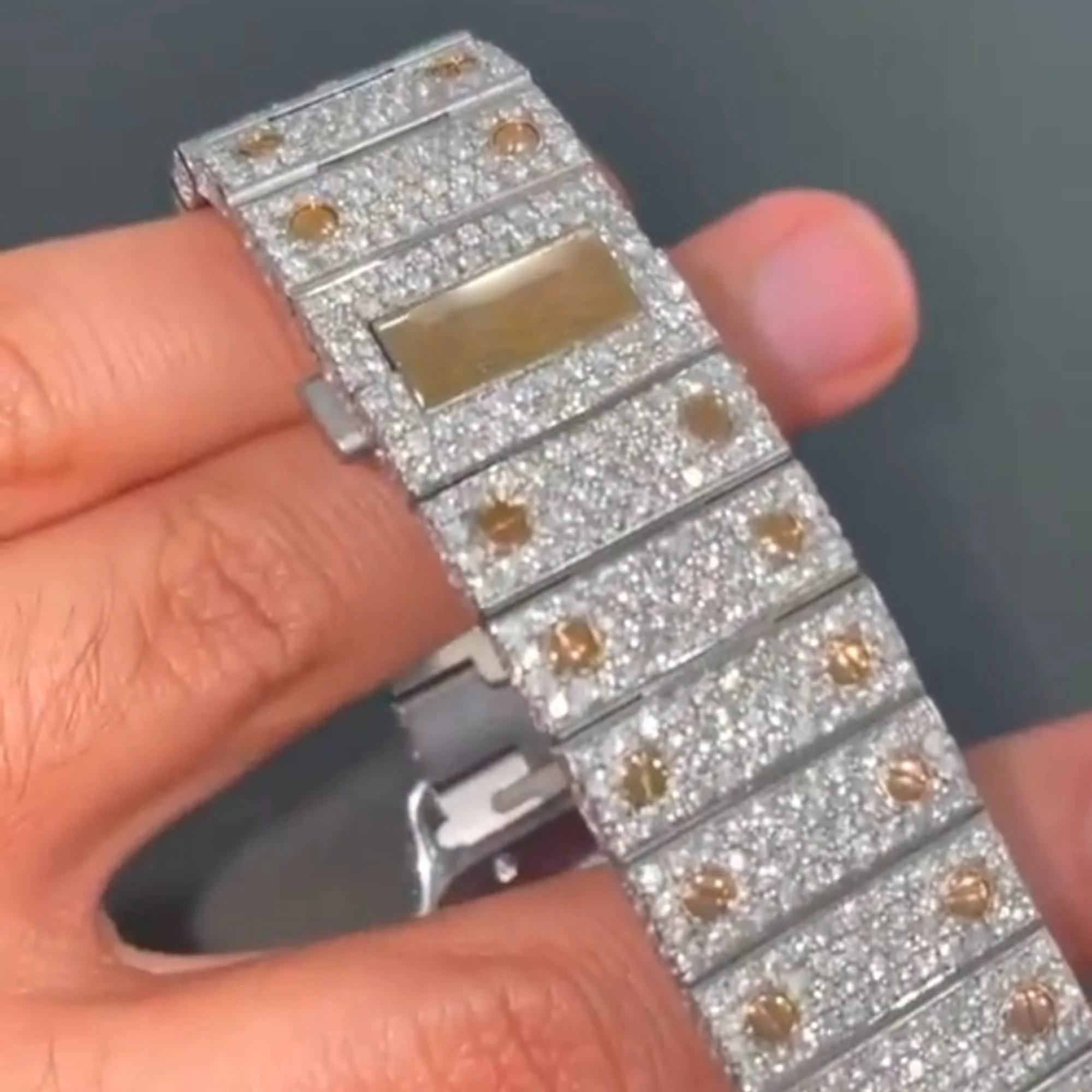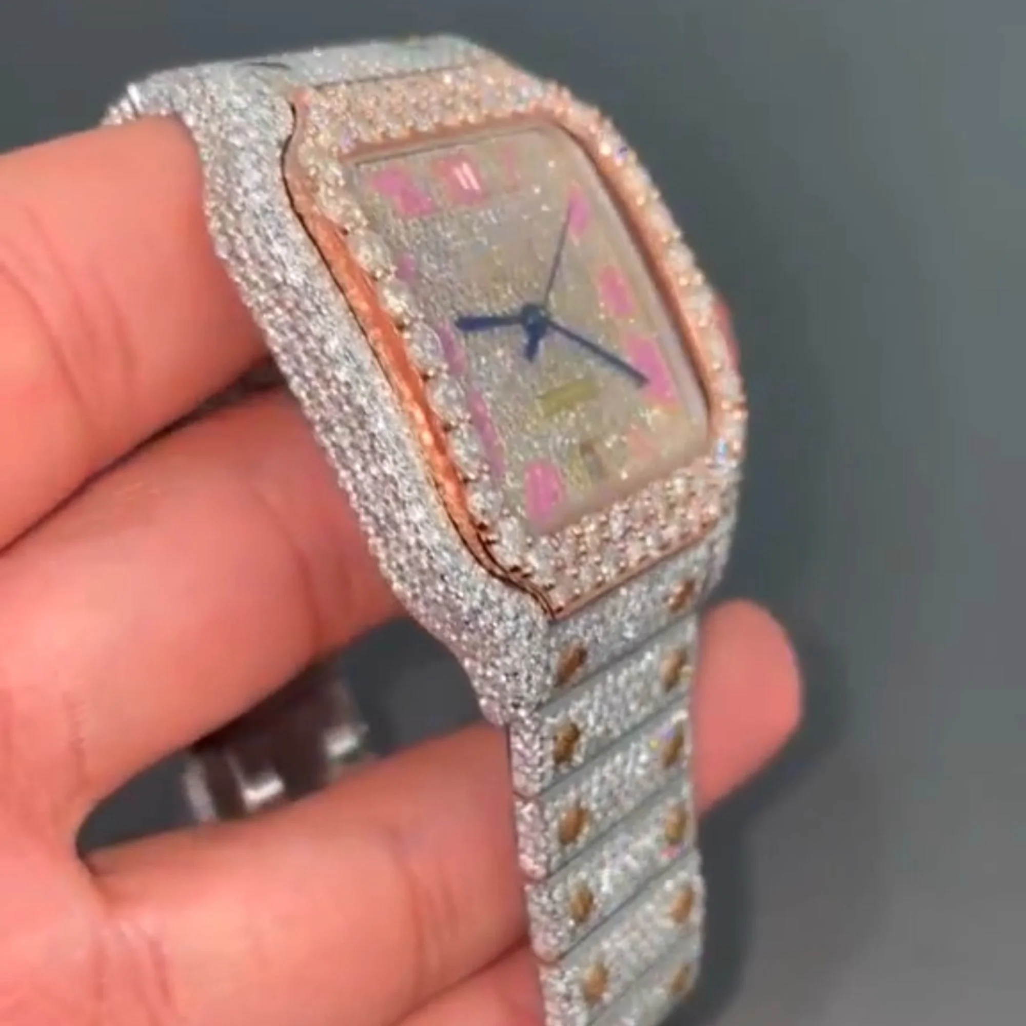 New Fashion Luxury Business Antique Stainless Steel Full Iced Square Custom Logo Vvs Moissanite Diamond Mens Watch ETA Movement