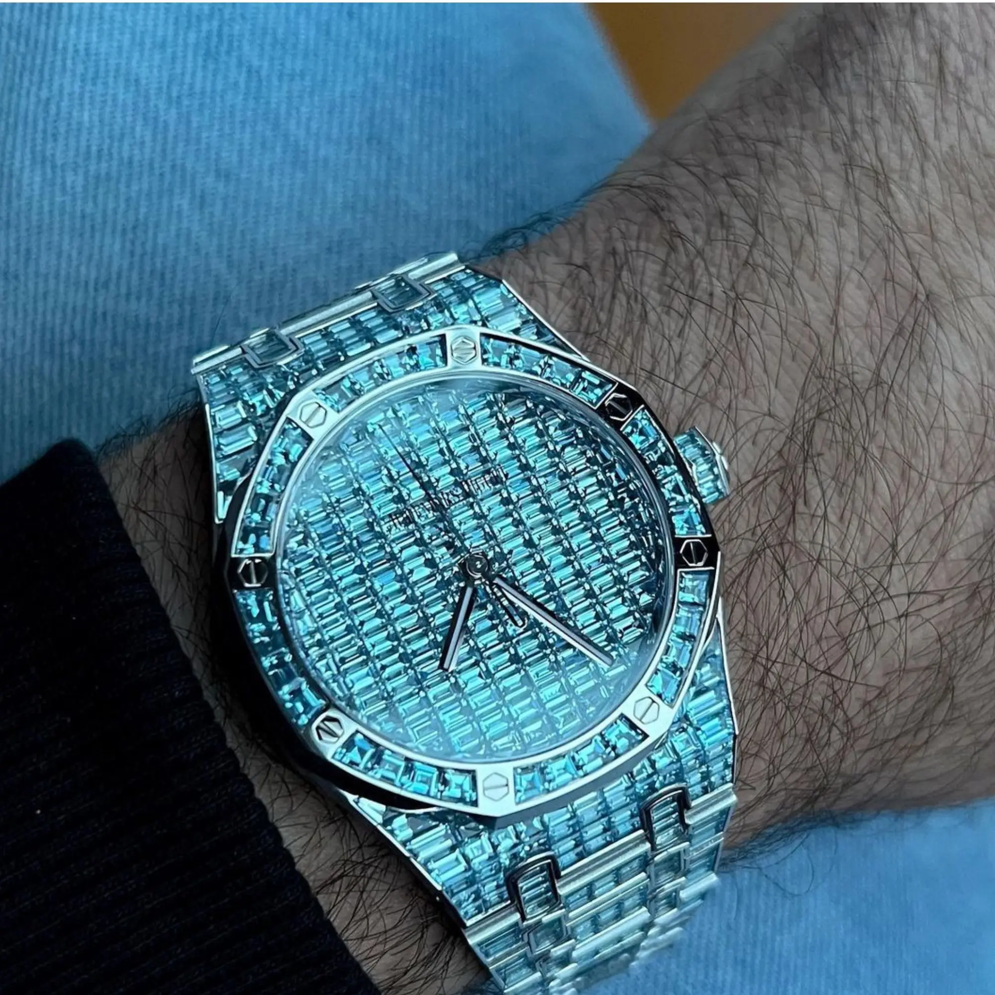 Custom Luxury Square Quartz Moissanite Watch | VVS Iced Out Skeleton Design | Passes Diamond Tester Glass Dial Wholesale