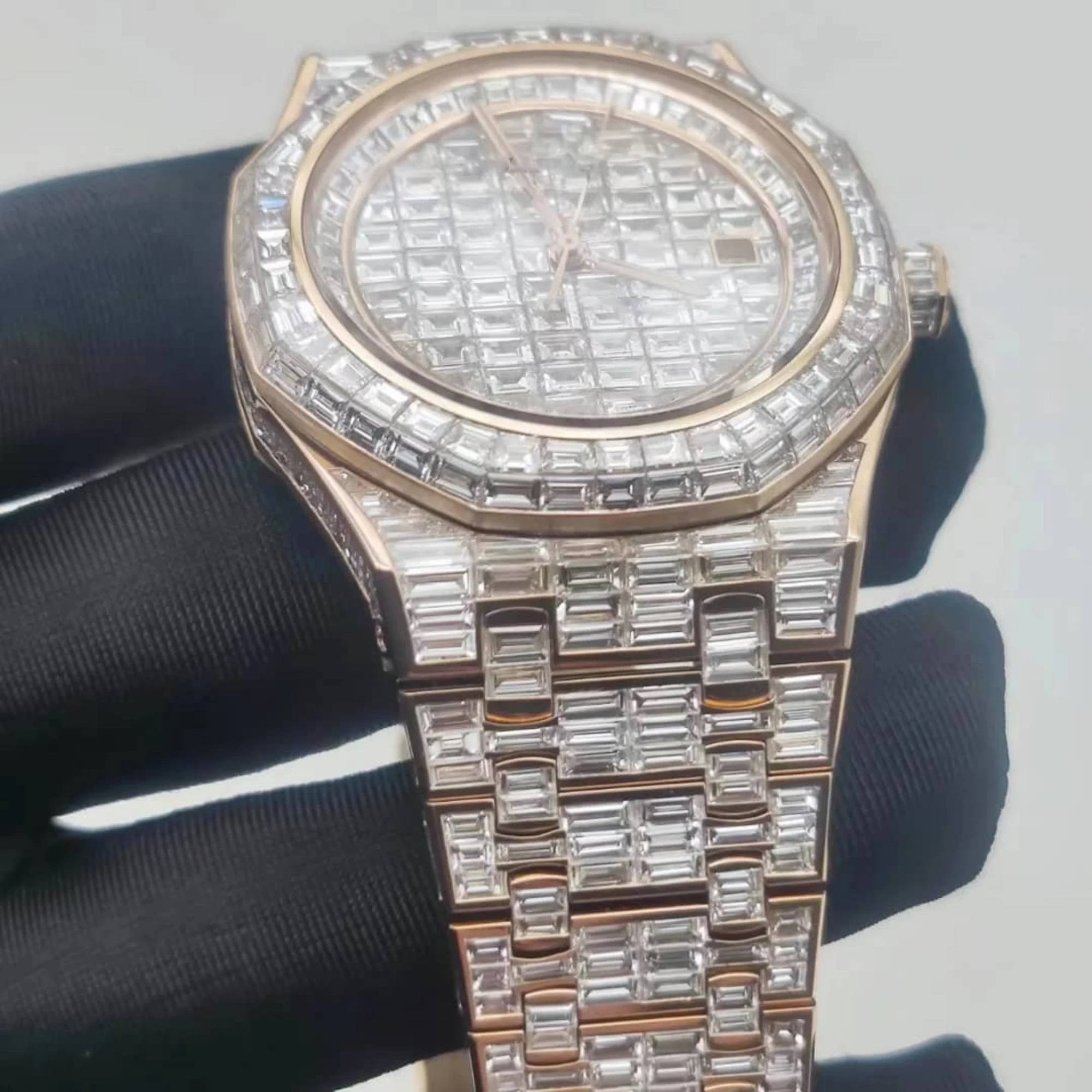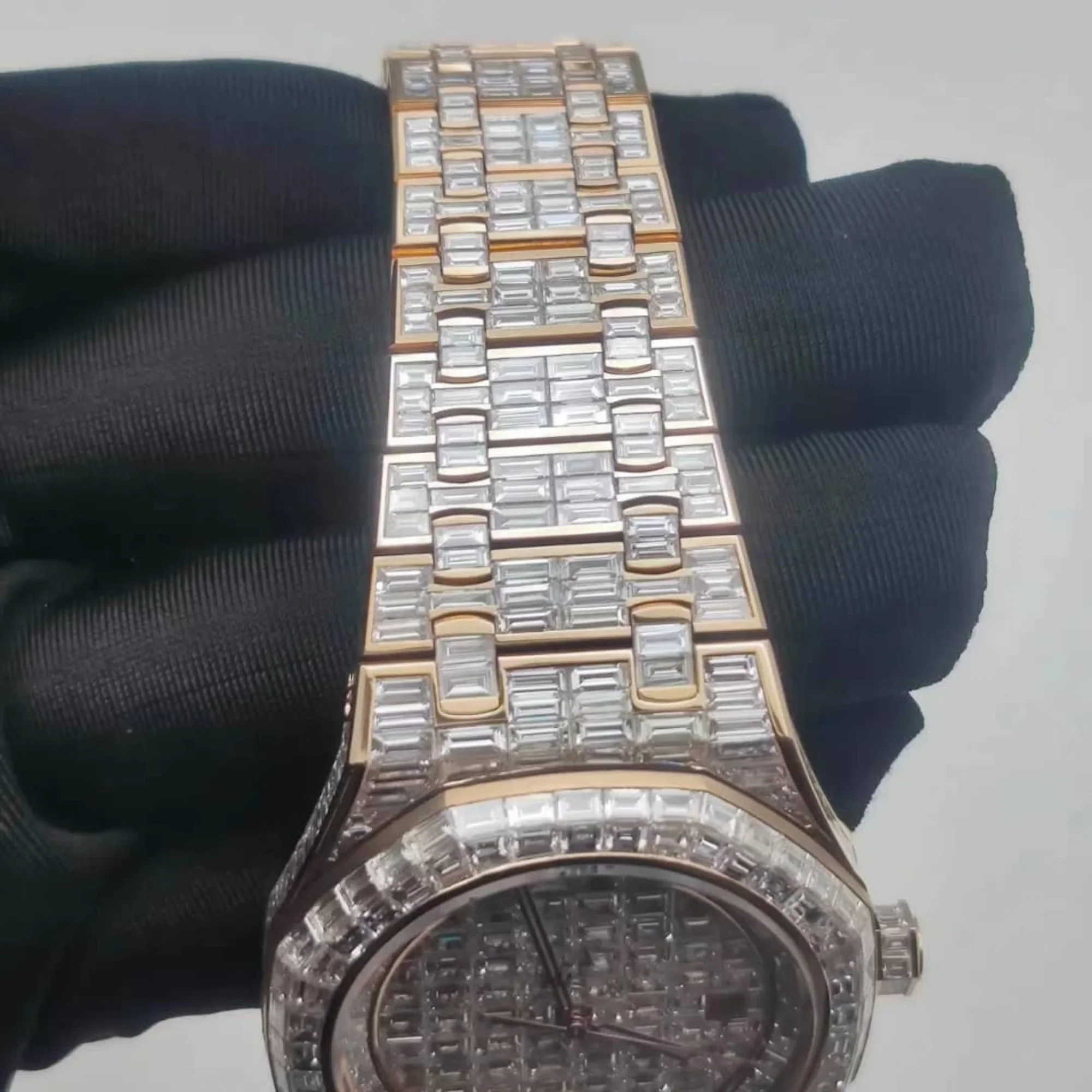 Latest Trending Design Big Dial Customize Diamond Vvs Lab Grown Watch Iced Out Hiphop Stainless Steel Mechanical for Men