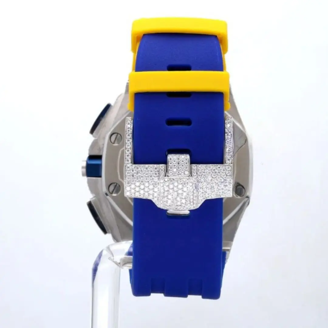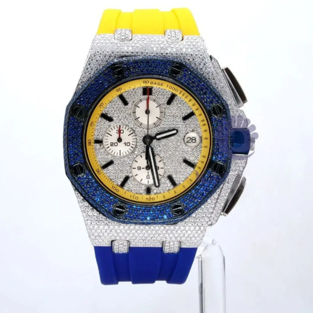 Iced VVS Moissanite Alloy Quartz Chronograph Watches | Yellow Gold | Square Glass | Luxury Fashion Design | Diamond Tester
