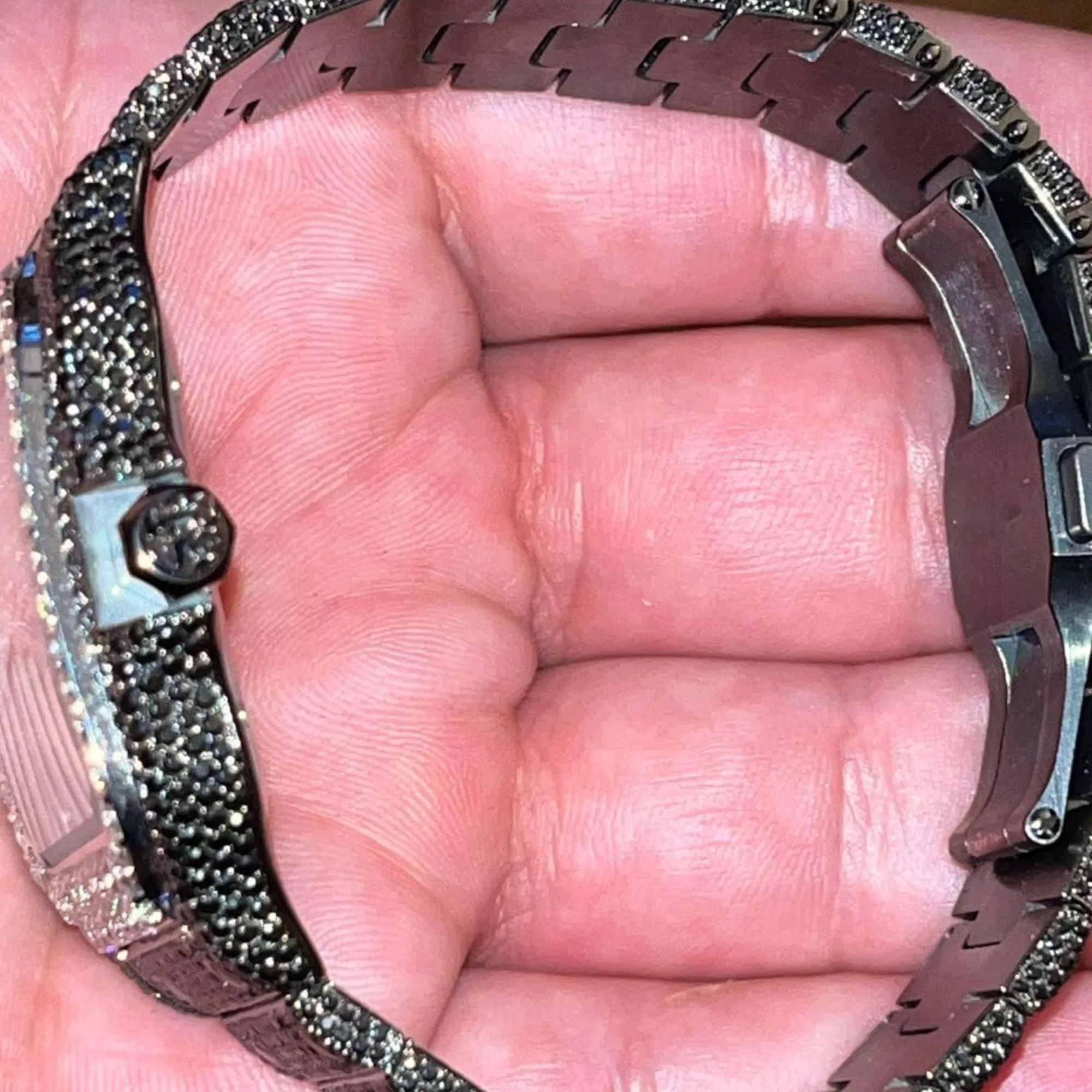 Original Branded Handmade Premium Quality Black Round Dial Half Iced Out Unisex Luxury Fine Jewelry VVS Lab Grown Diamond Watch
