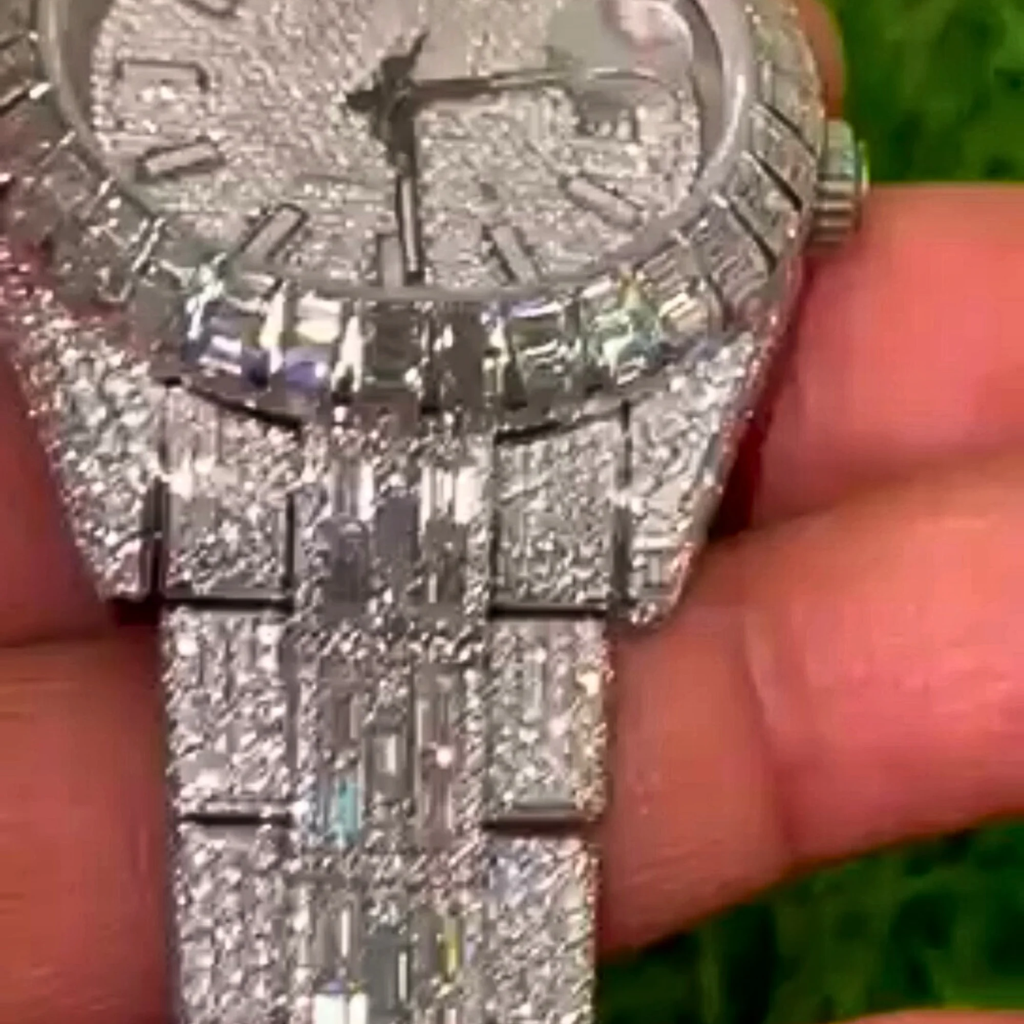 Custom Iced VVS Lab Grown Square Quartz Watch Stainless Steel Yellow Gold ETA Movement Luxury Hip Hop Pointer Dial GRA