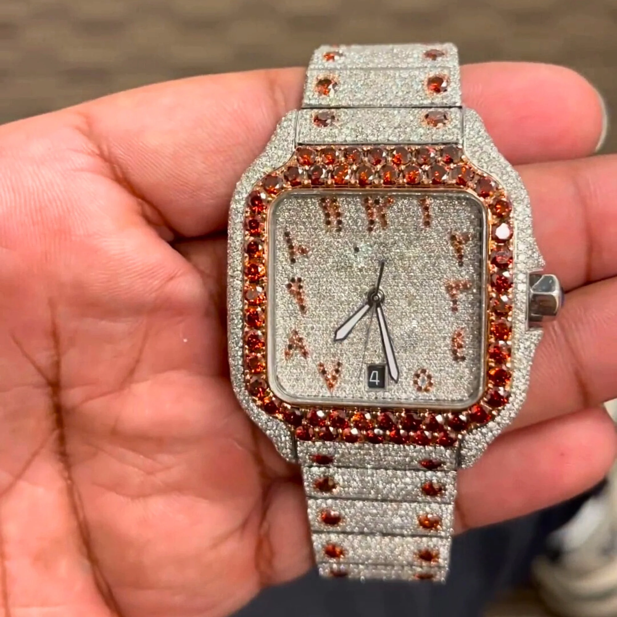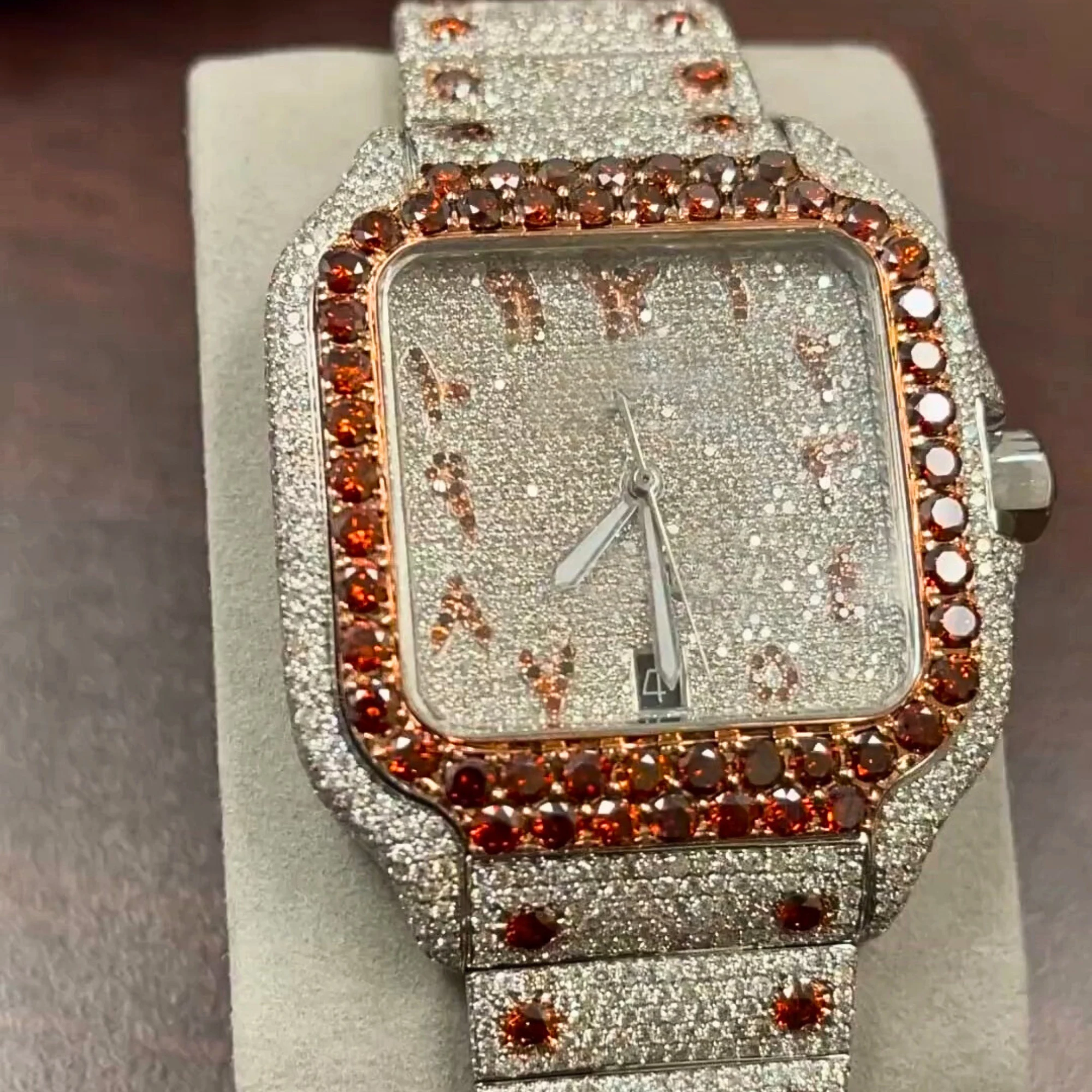 Top Brand Custom Luxury Bling Quartz Iced Out Round Men Hip Hop Full Black Stainless Steel Belt Moissanite Diamond Wristwatch