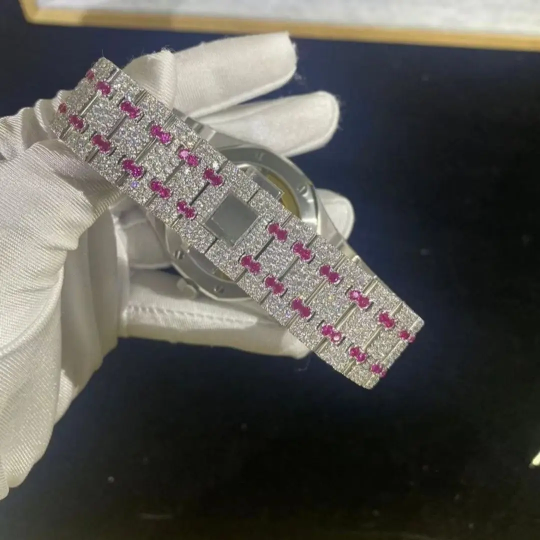 High-end Luxury Custom Men Women Bling Full Lab Grown Watch VVS Moissanite Hip Hop Iced Out Stainless Steel Mechanical Watches