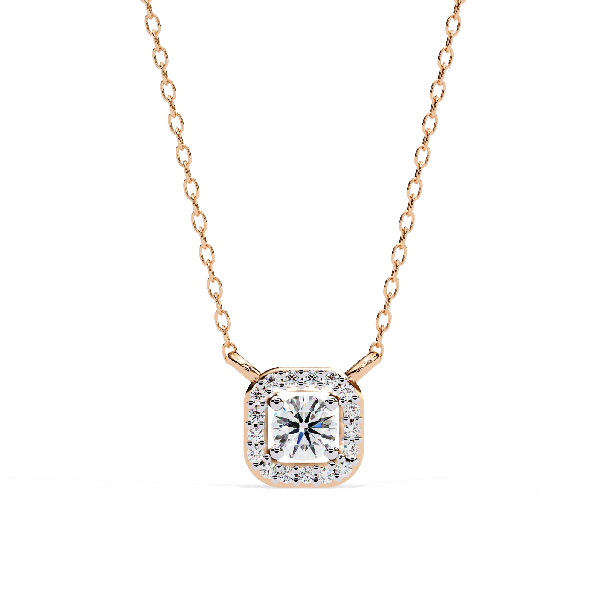 Exclusive Lab Grown Diamond Halo Pendant 0.30 Carat Round Cut Moissanite Diamond Necklace with 14K 18k Gold