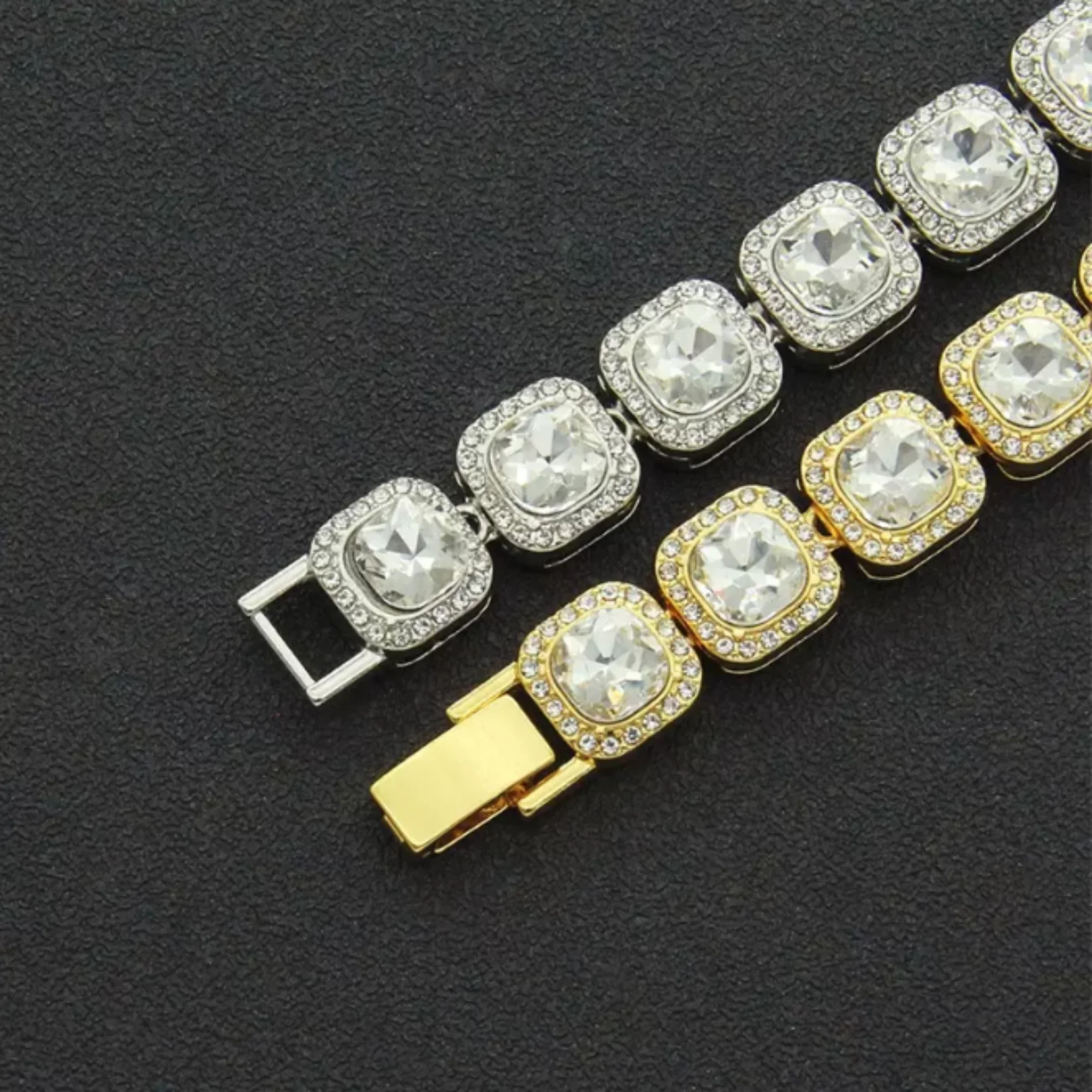 High Quality Customized 12 mm Halo Moissanite Diamond Chain 925 Sterling Silver White Yellow Gold Diamond Chain