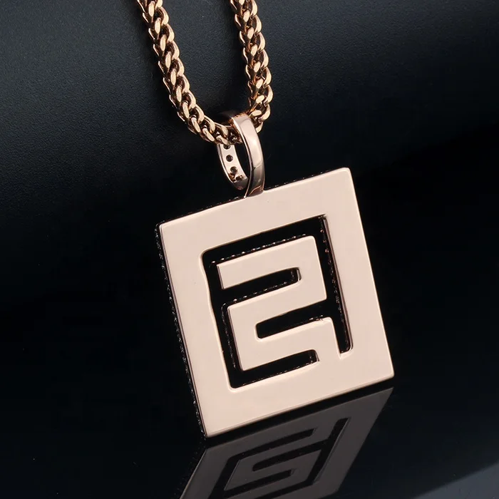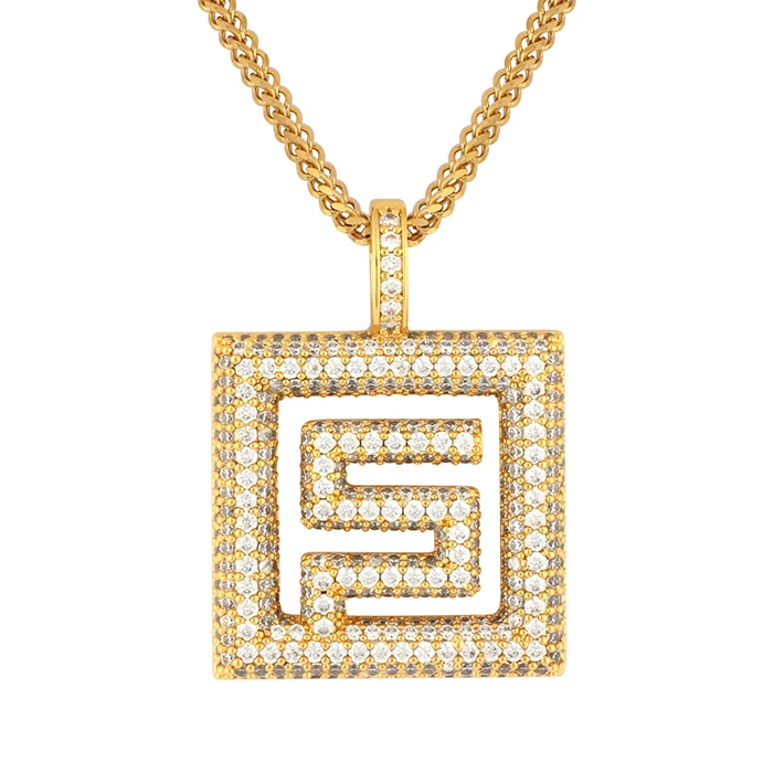 Best Quality Geometric Figure Design Gold Plated Iced Pendant Necklace Hip-Hop Style Zircon Stones Fashion Mainly Made Brass