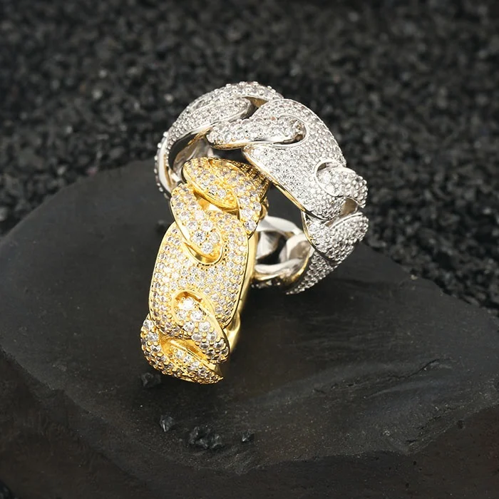 Custom Logo Iced Diamond Cubic Zirconia Rings Fashionable Hip Hop Jewelry Gold Silver Plating for Weddings Parties Anniversaries