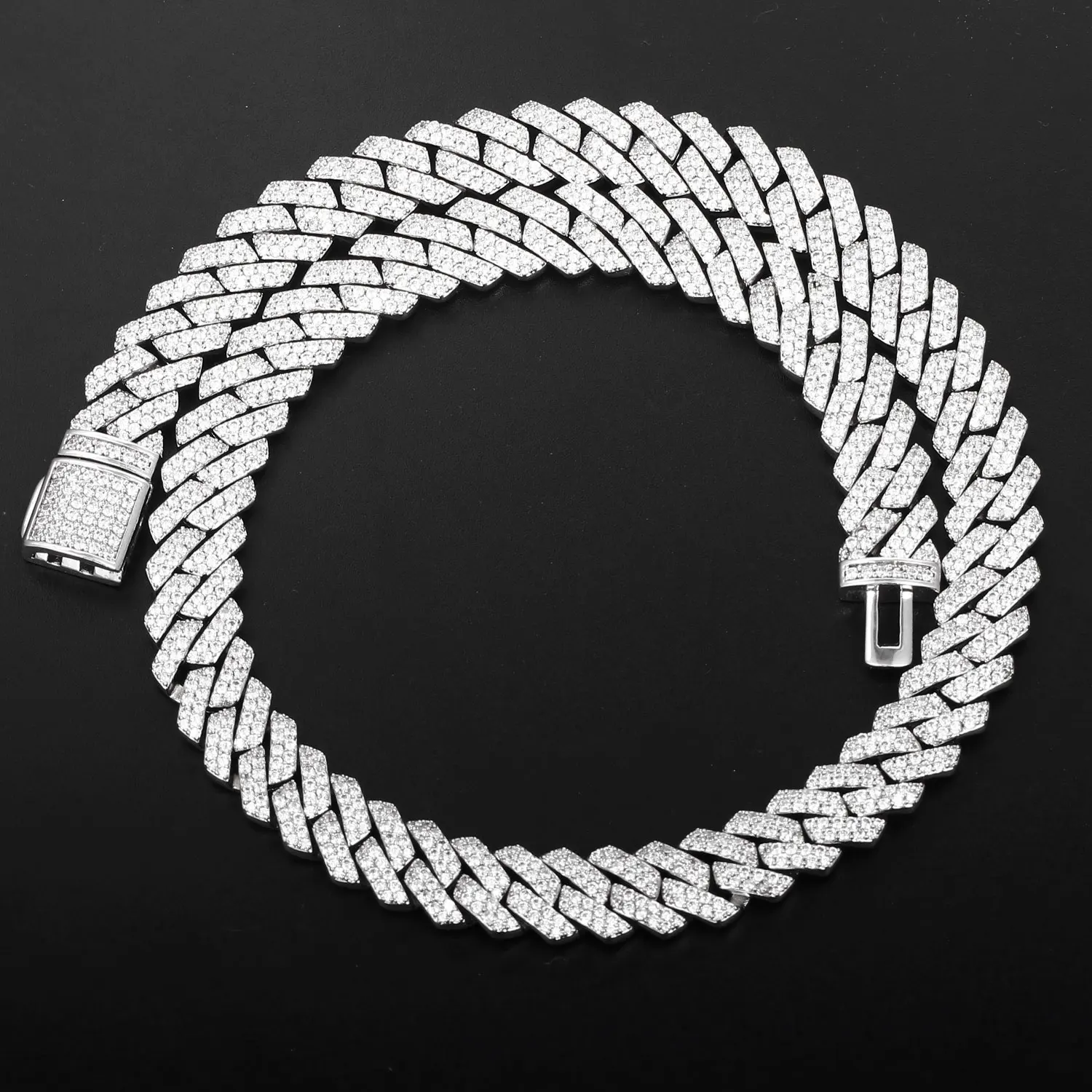 Wholesale Factory Price Cubic Zirconia Gold Plated Necklace Full Bling Diamond Cuban Link Chain for Wedding or Gift