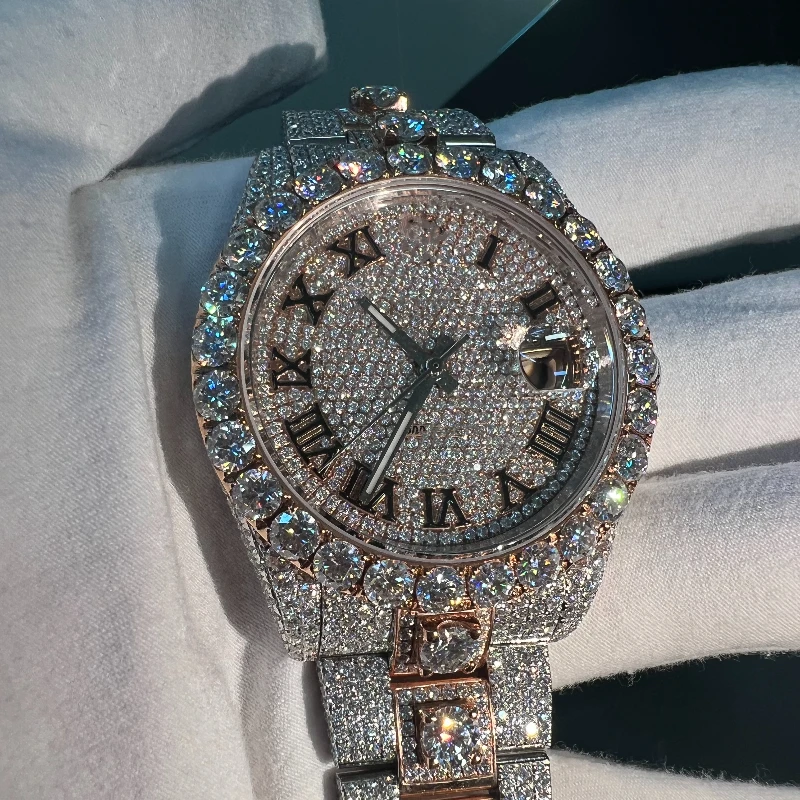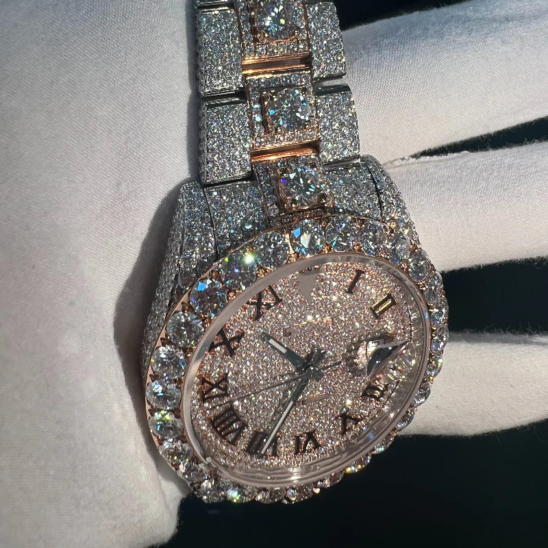 Luxury Full Bling Diamond Iced VVS Moissanite Mechanical Watches Pass Diamond Tester White Gold Stainless Steel 24mm Pointer