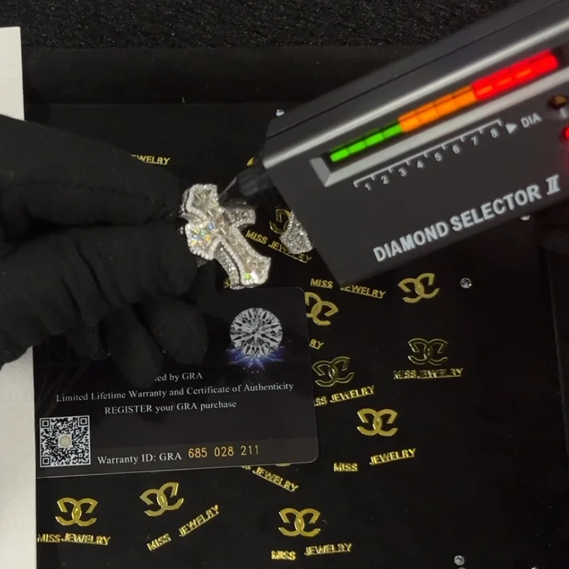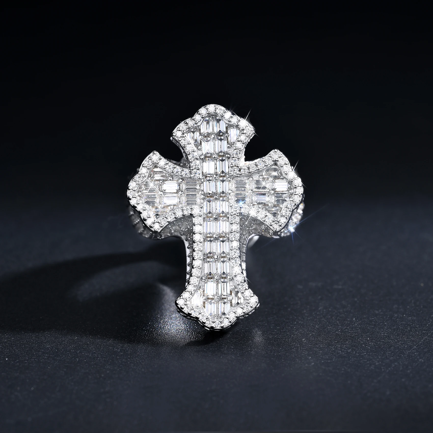 Hip Hop Style 925 Silver Moissanite Ring Cross-Shaped with Full Bling Diamond VVS Luxury Jewelry Design