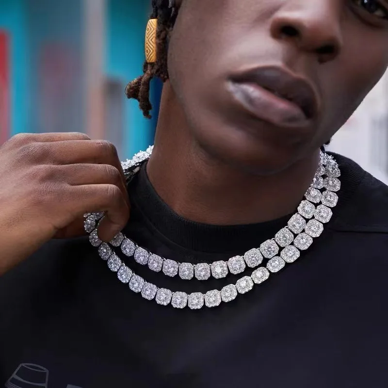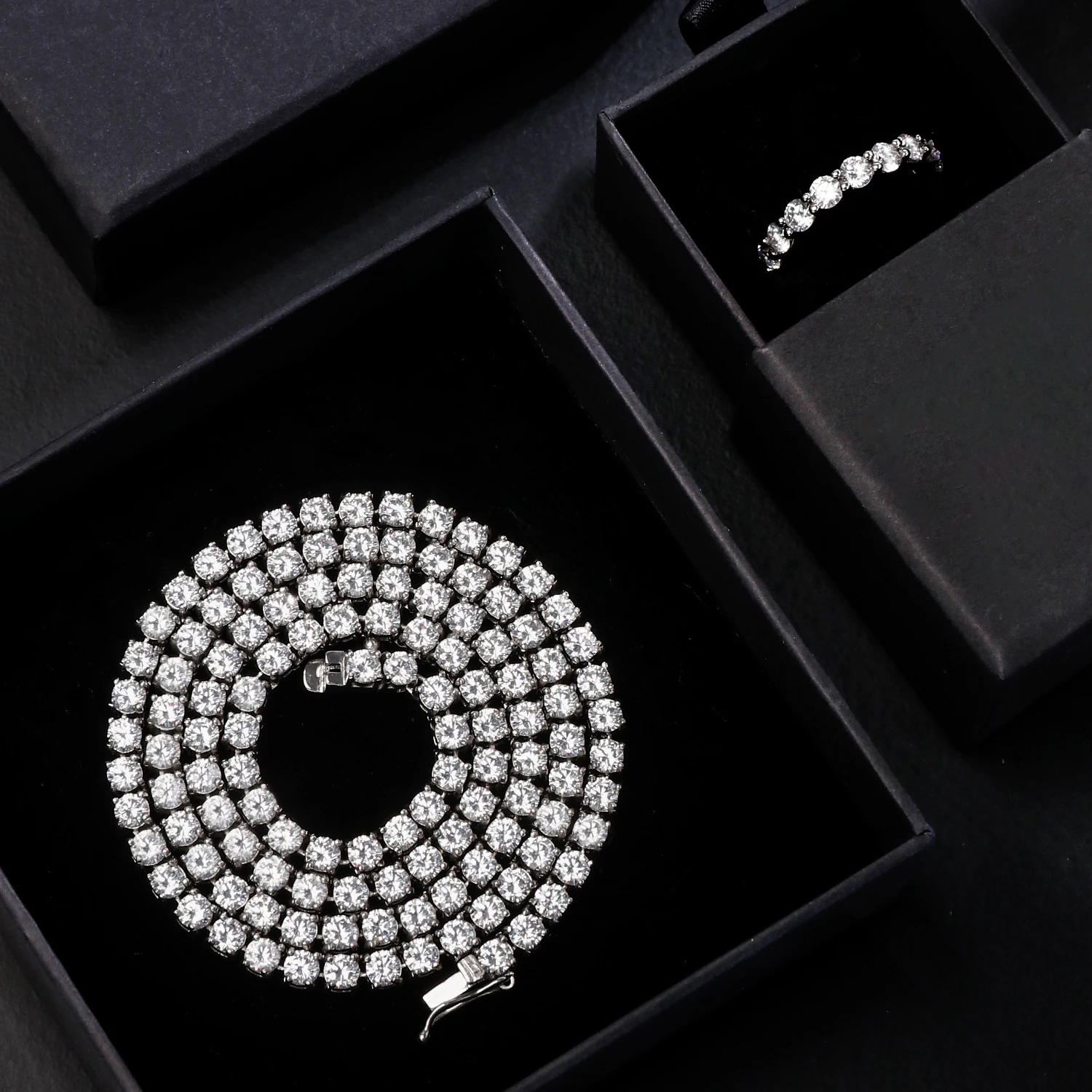 Hip Hop Jewelry's 6mm VVS Moissanite Tennis Chain Necklace and Bracelet All in Sterling Silver