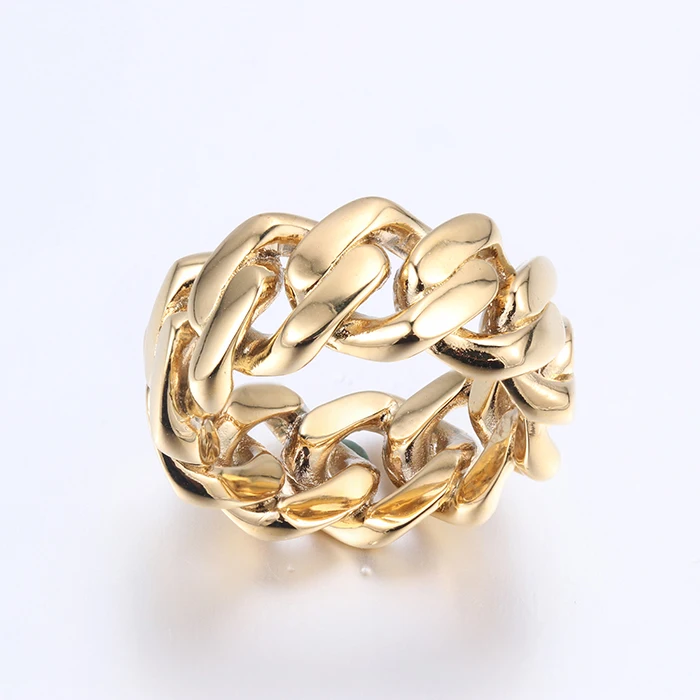 Custom Logo Hip Hop Style Gold Plated Stainless Steel Fashion Rings Unique Jewelry with Impressive Logo Design