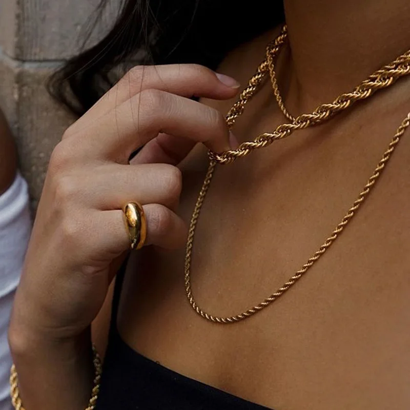 Wholesale Fashion Hio Hop Style Rope Chain 18k Plated Gold Silver Plated Jewelry 2.5mm Stainless Steel Necklace Chain