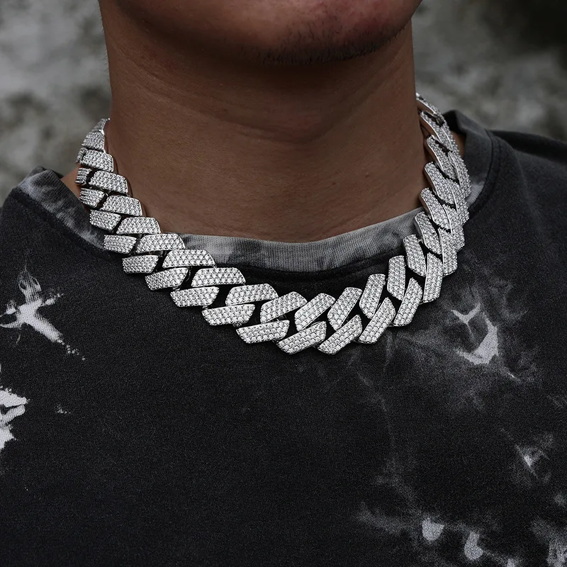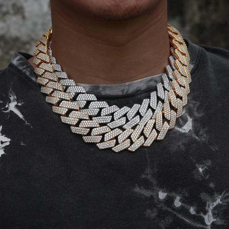 22mm Wide Heavy Gold Plated Alloy Zircon Iced Out Bling Cuban Link Hip Hop Chain Necklace